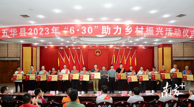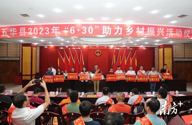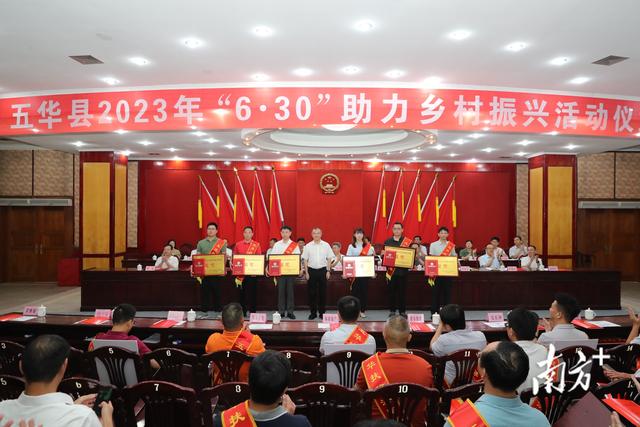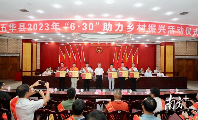 6月30日上午,五华县举行2023年“6·30”助力乡村振兴活动仪式,围绕“巩固脱贫成果、助力乡村振兴”主题,动员社会各界力量积极参与“百县千镇万村高质量发展工程”,助力全面推进乡村振兴,推动五华苏区高质量发展。
