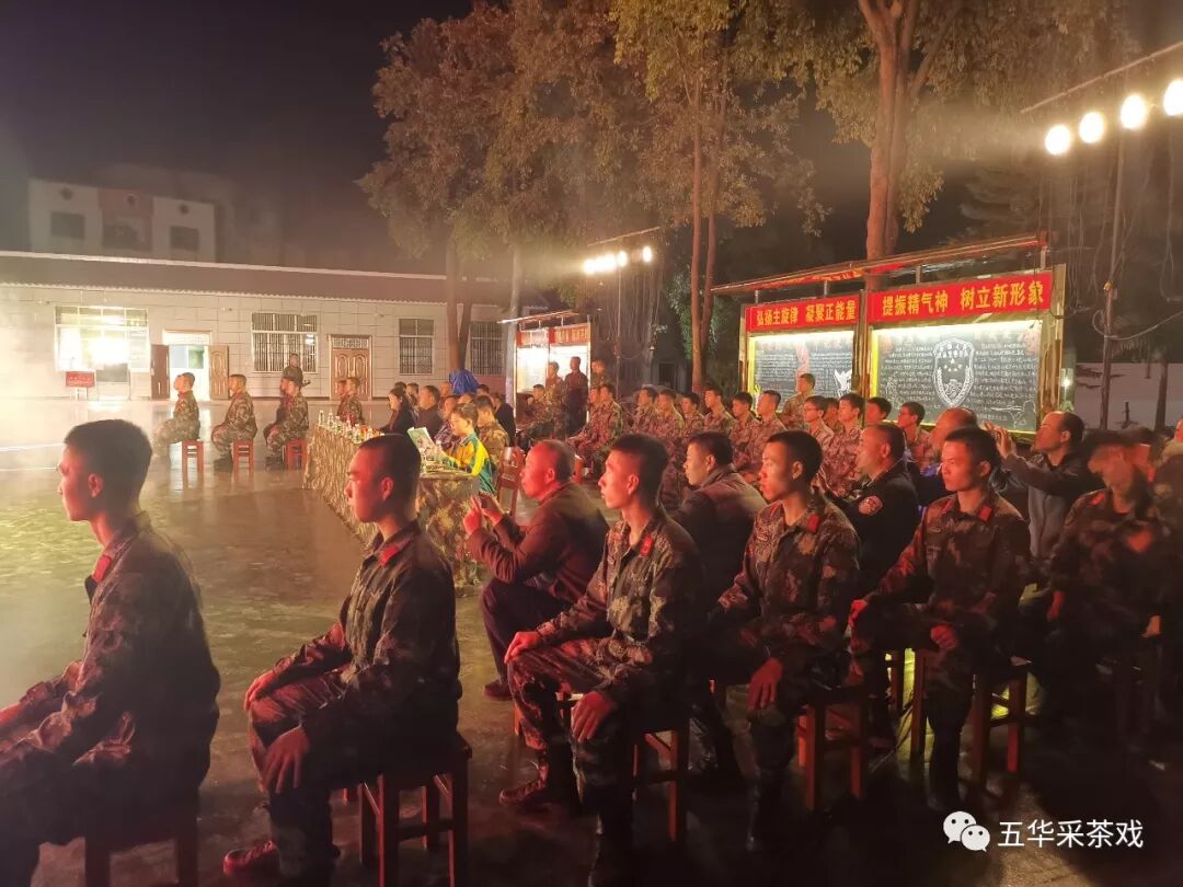 本次演出由 五华县采茶戏传承保护中心和部队官兵联合出演,整台演出主题鲜明、形式多样。晚上7点,晚会在舞蹈《盛世欢歌》中拉开帷幕,歌曲《兵哥哥》《舍不得让你走》表达了百姓对武警官兵的深情厚谊和美好祝愿。 《撸起袖子加油干》、《祖国面貌一片新》《我们都是追梦人》抒发了对党和国家的无比感激和热爱之情。 武警官兵虎虎生威的技能表演将整场晚会推向了高潮,展示了新时代军人的英勇风范和精神风貌,赢得了现场观众的阵阵喝彩。 器乐演奏《扬鞭催马运粮忙》《月光下的凤尾竹》,采茶戏《对花》《文明在哪里》《纳西情歌》、《开门大吉》等精彩纷呈的文艺节目轮番上演,整场晚会将军爱民、民拥军、军民鱼水一家亲的深厚情谊展现得淋漓尽致。