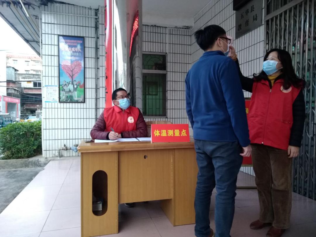四是开展值班值守志愿活动。教育局志愿者成员在教育局门口值班,对来访人员进行签名登记,体温测量,义不容辞,毫无怨言,积极做好志愿服务登记工作;