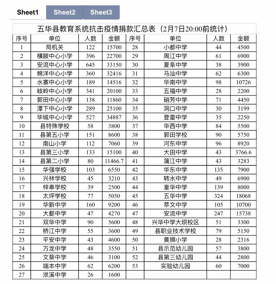 附:五华县教育系统抗击疫情捐款汇总表(2月7日20:00前统计)