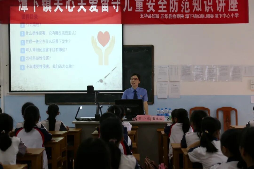 为深入学习贯彻习近平新时代中国特色社会主义思想,深入贯彻落实习近平总书记关于妇女和妇女工作的重要论述,依法维护女童人身权益,促进女童安全健康成长,近日,我院未成年人检察工作办公室(简称“未检办”)联合派驻长布检察室走进五华县潭下镇中心小学,为该校留守女童上了一节特殊的法治课。