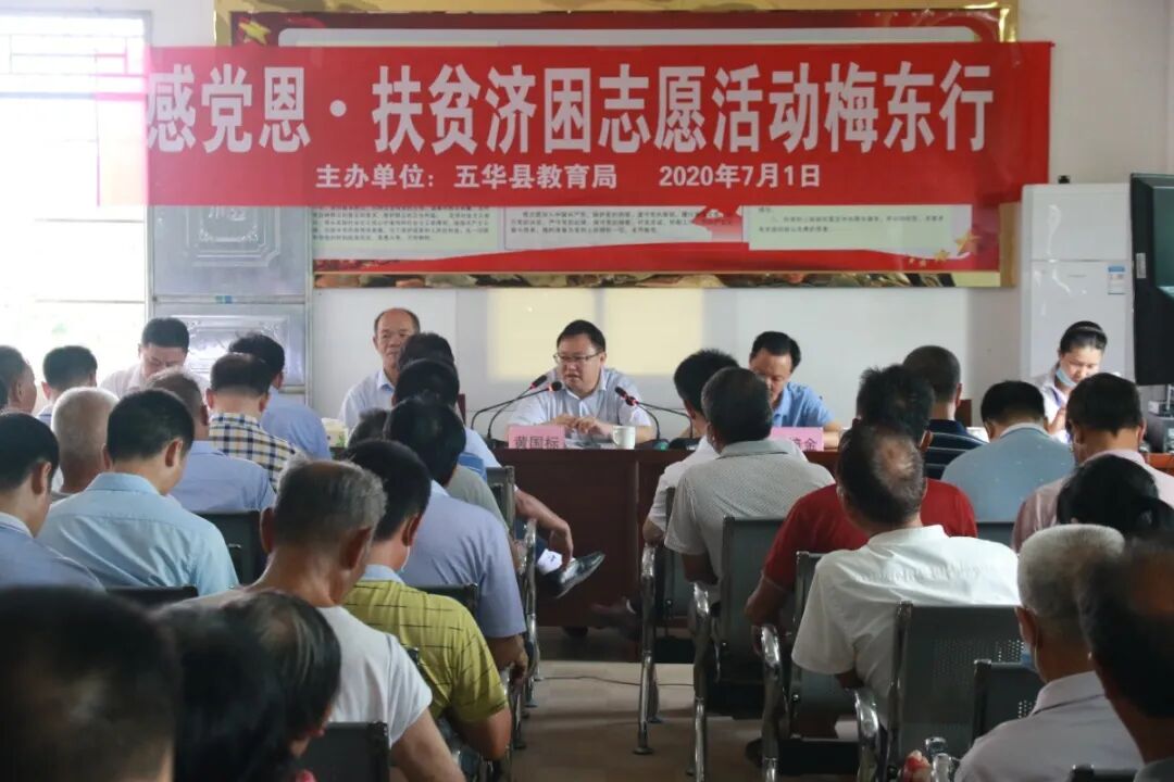 为庆祝中国共产党成立99周年,深入开展革命传统教育,重温红色经典,弘扬革命精神,进一步激励和引导局机关各党支部和全体党员紧密团结在以习近平同志为核心的党中央周围,不忘初心、牢记使命,凝心聚力、奋发进取,为决战决胜脱贫攻坚、助力乡村振兴作出更大贡献。7月1日至2日,五华县教育局组织党员干部开展“感党恩·扶贫济困·志愿服务梅东行”主题党日活动。