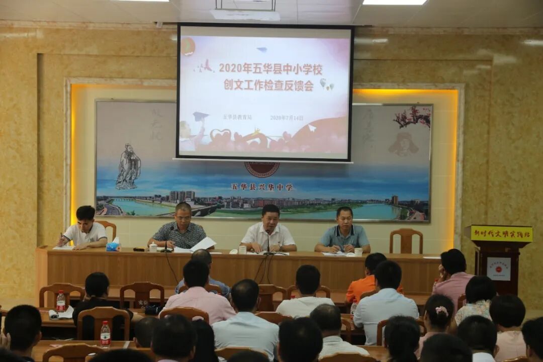 7月14日上午,县教育局在兴华中学召开2020年五华县创文实地考察和未成年人思想道德建设工作检查反馈会,反馈创文工作检查情况,部署下一阶段工作任务。会议由陈晓红同志主持,局党组副书记、副局长陈雨新,局双创办负责同志,全县中小学校分管创文工作领导和业务工作人员共160多人参加会议。
