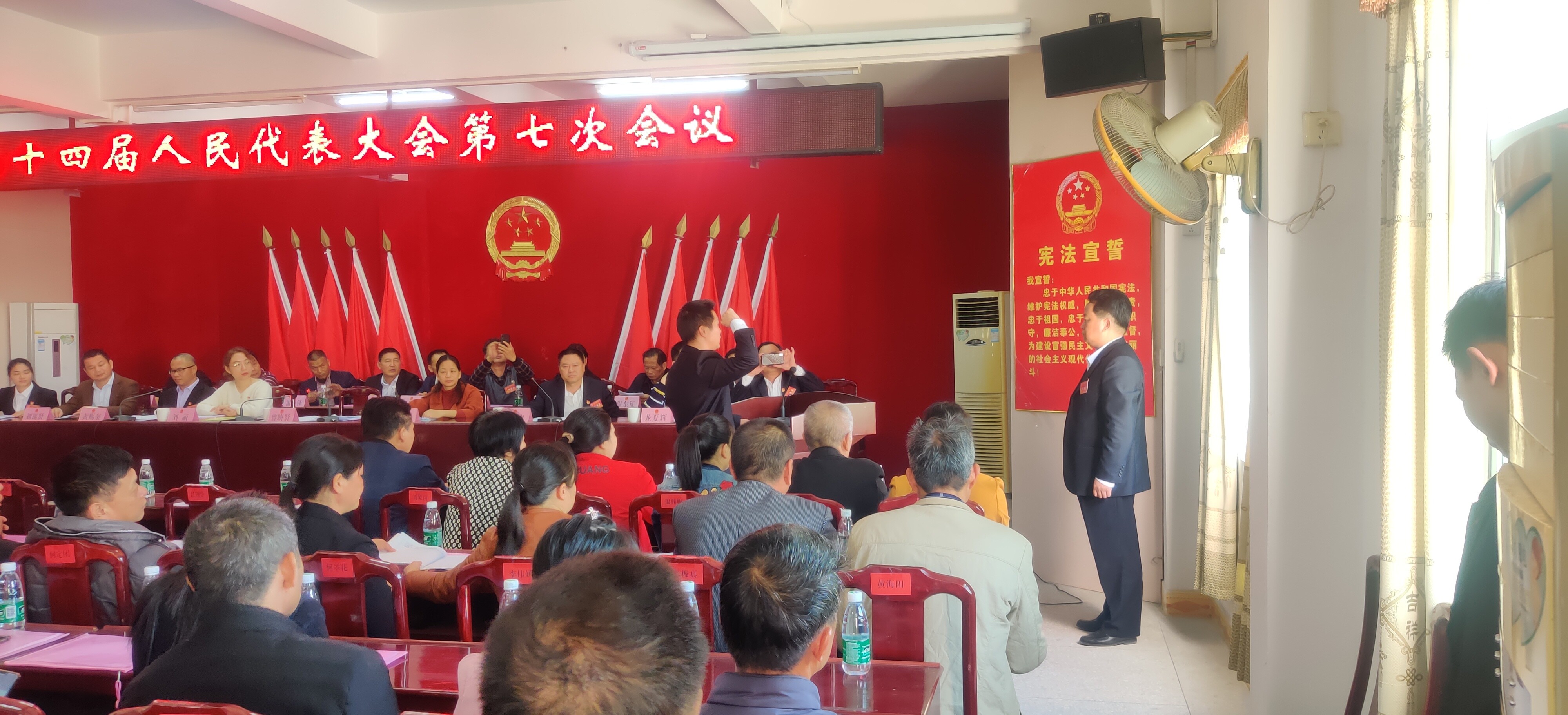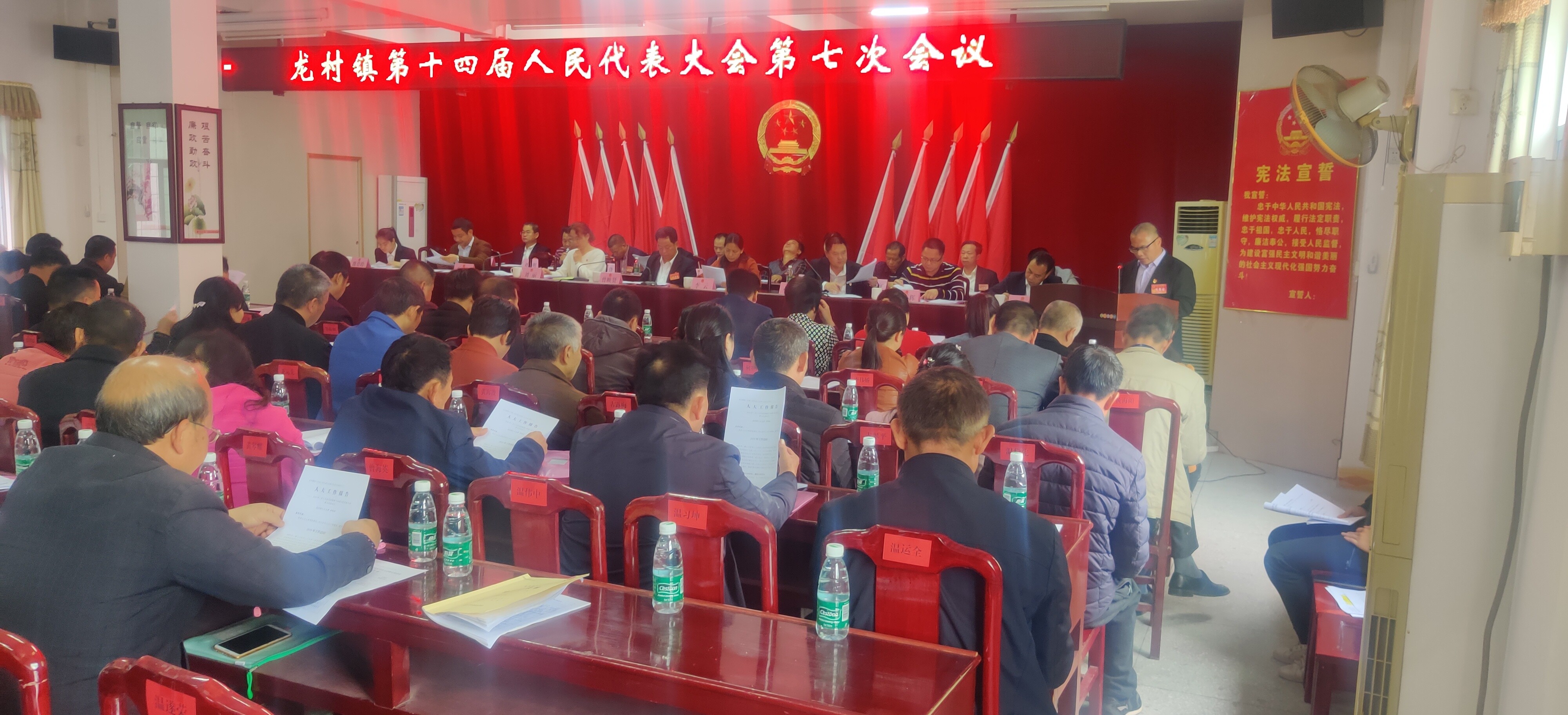 新当选的副镇长进行《中华人民共和国宪法》宣誓。