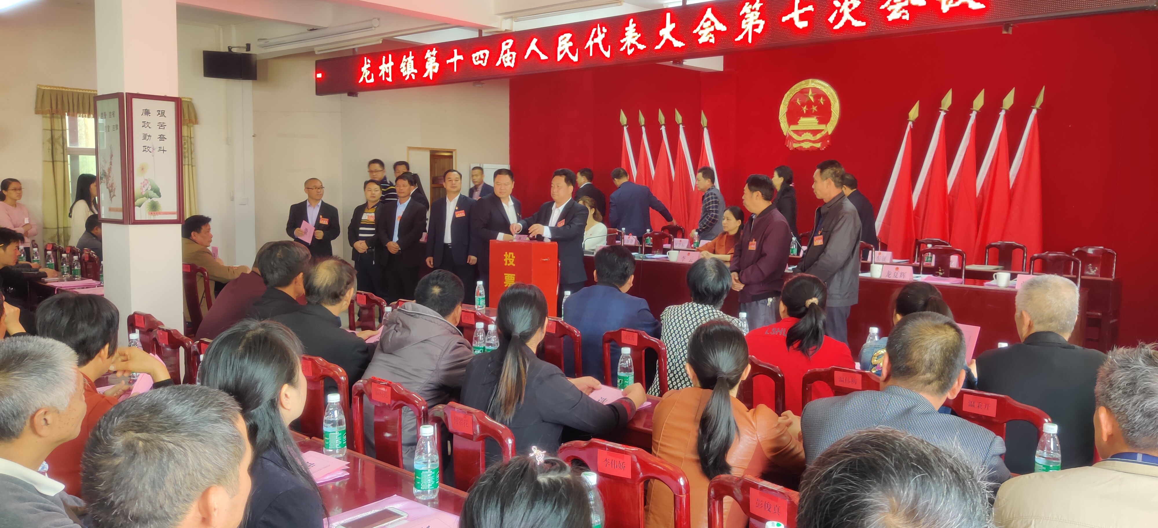 1月6日上午,龙村镇第十四届人民代表大会第七次会议在镇政府三楼综合会议室胜利召开。此次会议应出席会议代表92名,实到80名,符合法定人数。出席会议的还有县人大常委会选举联络人事任免工作委员会副主任李云,县委组织部公务员室主任刘丽及60多名列席人员。会议由镇党委书记曾映贤主持。