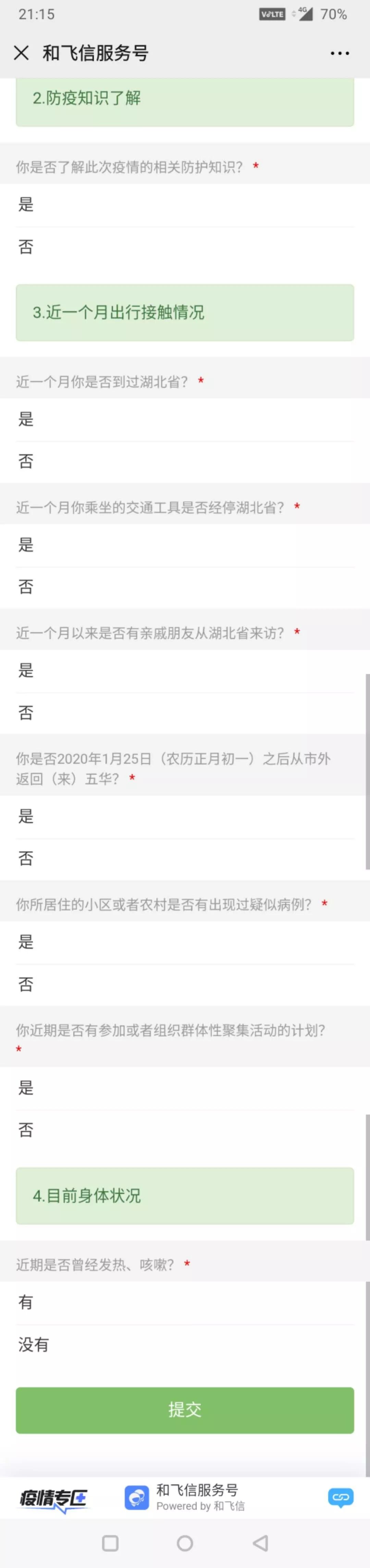 在这场没有硝烟的战争中,人民群众是疫情防控的主体,也是防控疫情的最强大力量。在此希望转水镇广大群众,认真如实填写《五华县转水镇疫情期间健康调查表》并转发短信给身边的亲朋好友填写,为打赢新型冠状病毒感染的肺炎疫情尽一份责任,献一份力量!