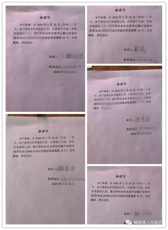 自疫情发生以来,我镇采取多项措施,对外地归乡人员实施严格的居家隔离,一是在居家隔离对象房屋门前张贴“该户居家隔离”告示,要求谢绝一切来人来访;二是在全村范围内公示居家隔离人员名单,公开投诉电话,接受社会监督,进一步提高隔离对象的行动自觉;三是签订承诺书,承诺如有外地归家人员,主动向村委会报告并自觉居家隔离十四天,做到不串门,不走动。