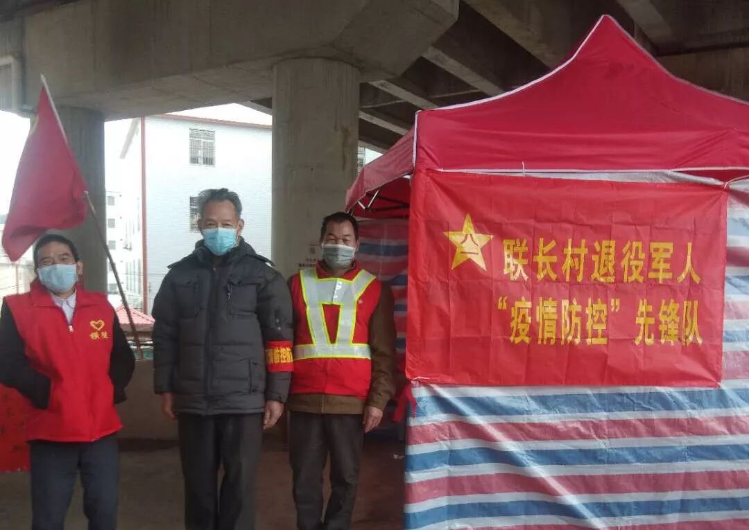 联长村魏定星、魏国贵、魏定宏、丘茂松、魏运章、赖金华、郑清华等退役军人为打赢防疫抗役阻击战,主动请缨到进村路口值班值守。