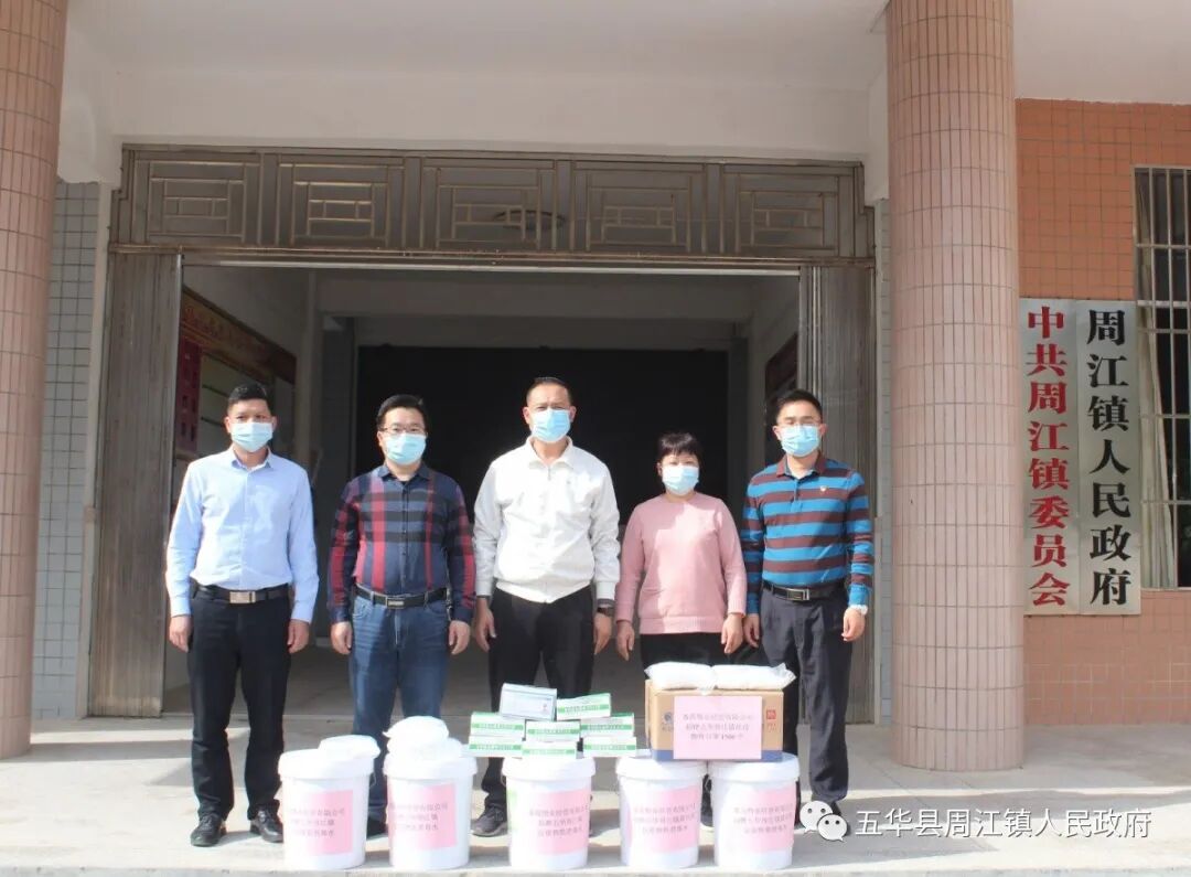2月24日,蓝坑村帮扶单位广州市番禺物业经营有限公司向周江镇捐赠1500只口罩、5桶消毒液,捐赠蓝坑村小学500只口罩和2桶消毒液。