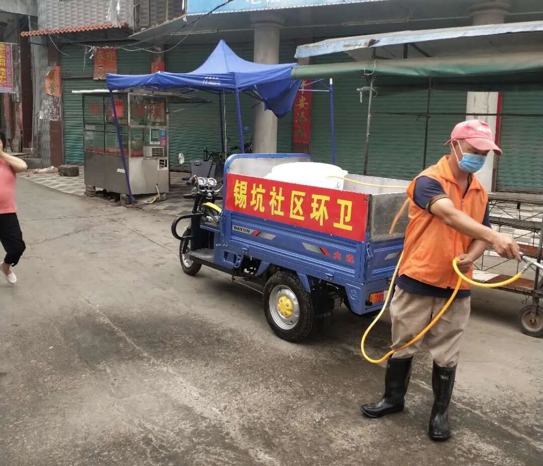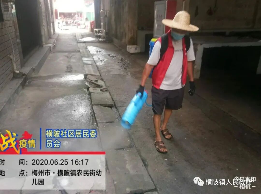 端午节期间,横陂镇三个社区消杀工作人员奋战在工作一线,对各自圩镇道路、市场等人群容易聚集的重点场所进行了集中的消毒消杀,确保食品安全和环境卫生。