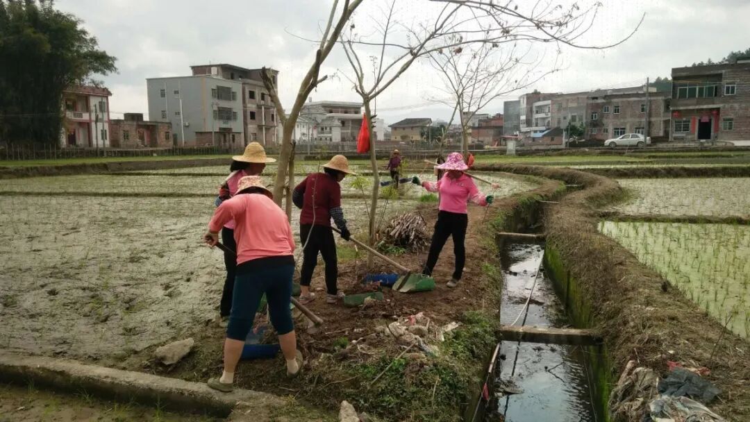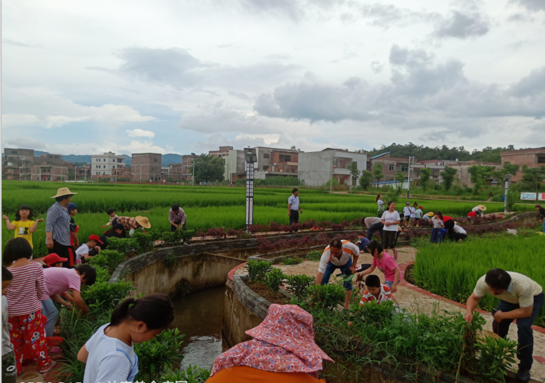 在参与的妇女儿童辛苦劳作下,田间绿道变得愈发美丽:一尘不染的蜿蜒小径,路旁郁郁葱葱的花木,清澈见底的小圳中鱼儿在畅游,田地里日渐饱满的禾苗,组成了一幅舒适惬意的田园美景画。