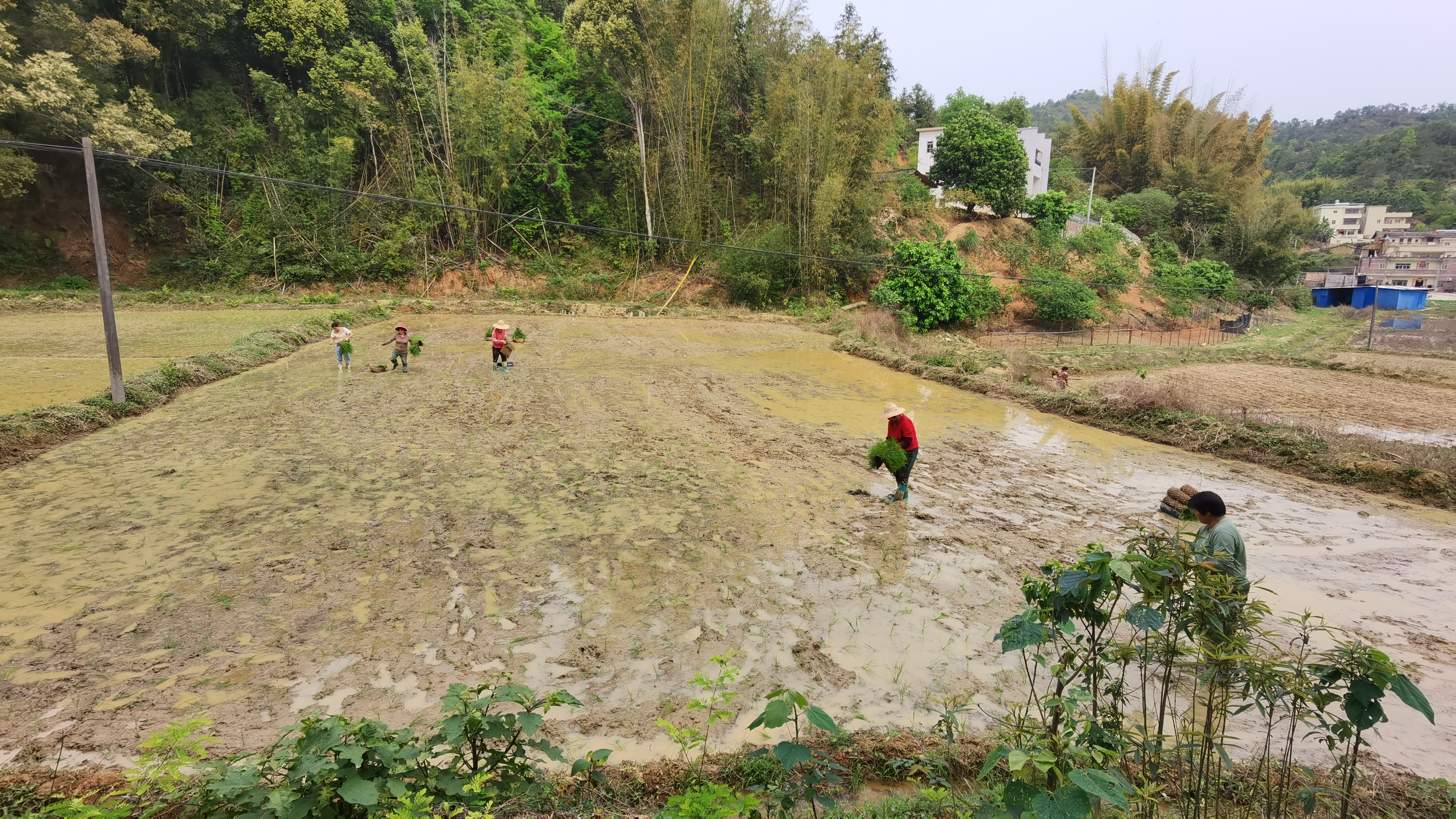 一年之计在于春,一年好景看春耕。在棉洋镇富强村新铺的农耕硬化路侧,昔日杂草丛生的撂荒地,如今已是连片成块的水稻田。