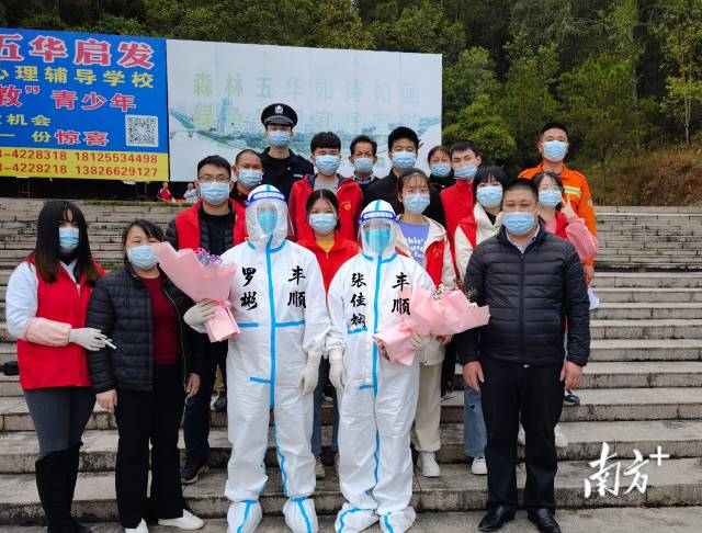 曾兰娇是华城小学的一名老师,接到任务后立即前往隔离点开展志愿活动。“当时和我爱人顺便提起这个志愿活动,没想到他记在了心里,立马带着10多个大学志愿者来支援我们,挺感动的。”曾兰娇说,他的爱人曾小仁是华城镇政府的一名工作人员,当天也在协助当地开展核酸检测工作,夫妻二人志同道合,都想为家乡五华做点力所能及的事。