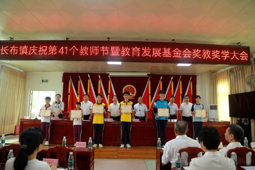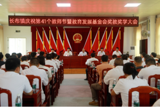 金秋九月桂香飘,在第41个教师节来临之际,9月9日上午,长布镇在镇政府五楼会议室隆重召开庆祝第41个教师节暨教育发展基金会奖教奖学大会。长布镇党政班子、镇教育发展基金理事会、监事会全体成员、驻长布镇帮镇扶村工作队,各村(社区)党组织负责同志、镇属各部门负责人及中小学(教学点)校长、中心教办负责同志,师生代表等共计160人参加会议。