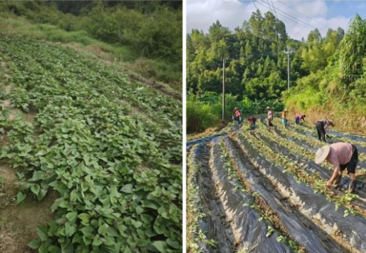 在种植过程中,廖佰坚信心百倍,精心组织有经验的村民参与种植与管理,随时将发现的问题上报,广东科贸学院指导采用高效覆膜种植,确保红薯在生长过程中能得到精准的养分供给,既节约水资源,又为红薯生长营造稳定的生长环境。同时,利用绿色防控手段应对病虫害,保证红薯的绿色、健康品质。蒋伟成和镇相关部门定期深入田间,观察红薯的生长态势,根据不同生长阶段的需求,科学调整施肥方案,为红薯茁壮成长提供充足养分。