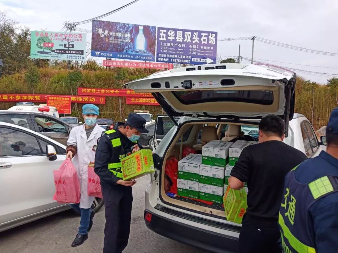 在现场,口罩、方便面、矿泉水等物资正有条不紊地传递给一线执勤的工作人员。没有多余的言语,一句:“谢谢!”,一句:“应该的!”,平实无华的对话中却恰恰彰显着大爱。他们传递出的不仅是物资,更是暖心的爱。他们不仅给一线抗疫工作人员增添了一份防护,更注入了暖暖的正能量.......