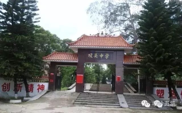 双头中学 位于梅州市五华县岐岭镇双头峨琅山下的望楼岗,始建于1948年,是一所山区初级中学。五华县双头中学,县一级学校,是一所山区初级中学。办学特色日益彰显,办学质量不断提高。中学位于岐岭峨琅山下的望楼岗,始建于1948年,是一所山区初级中学。校园依山傍水,环境优美。