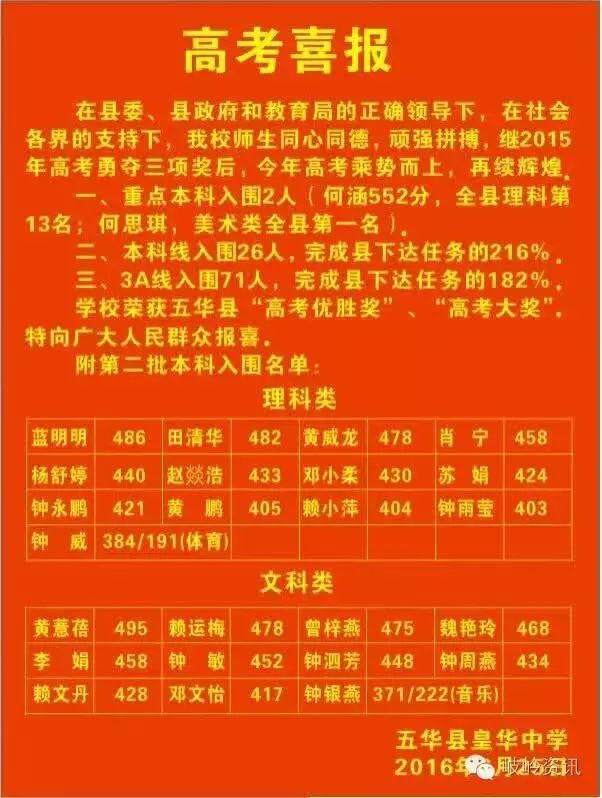 高考方面,皇华中学本科线入围人数26人,完成县下达任务216%,省三A线入围71人,完成县下达任务数182%;中考方面,皇华中学和双头中学考上东中、宪中、水中线人数继续创历史新高,教育事业蓬勃发展。
