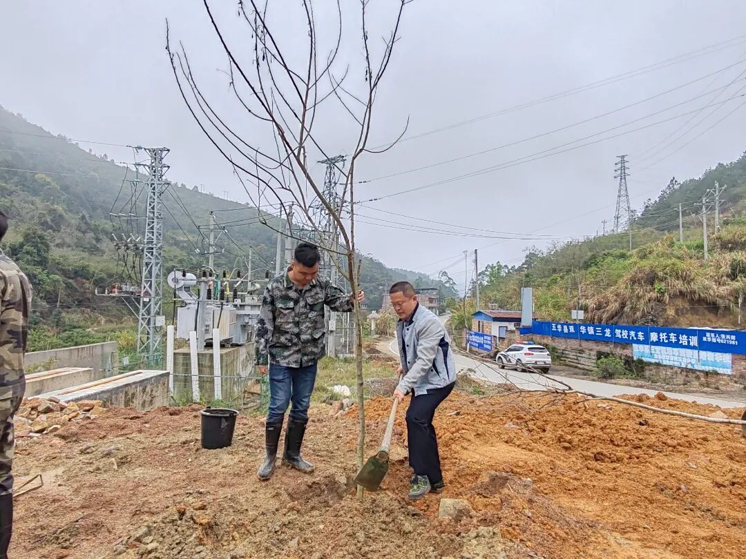 先锋示范,“点”上植 3·12植树节上午,双华镇机关党支部、双华派出所党支部及部分群众40余人到富美村开展“党建引领共植新绿 携手共建绿美双华”主题党日活动。 植树现场,镇党委书记张小玲、镇长廖天华手拿锄头,与现场党员干部、群众一道忙活起来,新栽植的树苗排列有序,展现出了勃勃生机。 部门联动,“线”上增绿 五华县纪委监委、五华县交通运输局、五华县公路事务中心等挂点单位到我镇开展“机关联基层、干部带群众”义务植树活动,中国移动五华分公司、广东根基建设工程有限公司等结对帮扶单位到我镇开展义务植树党日活动,持续推动绿美双华生态建设走深走实。 图为县公路事务中心定向捐赠1800棵苗木用于道路两旁绿化。 图为广东根基建设工程有限公司及五华中英文实验学校到我镇军营村一河两岸种植树木后的航拍图。 图为五华县纪委监委到我镇富美村、军营村一河两岸种植树木后的现场实拍图。 图为中国移动五华分公司到军营村开展义务植树主题党日活动。 各村(社区)坚持党建引领,持续开展了系列“我为家乡种棵树”“家有喜事来种树”等丰富多样的主题植树活动,道路两边、一河两岸……处处种绿成带、“线”上成景。 全民参与,“面”上添绿 据不完全统计,3月以来,双华镇累计超500人参与到植树活动中来,全镇上下都是忙碌的身影在绿色中涌动,“五边”“四旁”植绿增绿、见缝插绿,致力于打造出“人大林”“巾帼林”“青年林”“家庭林”等造林示范点,推动形成“人人爱绿、家家植绿、自觉护绿”的生动局面,“齐心添绿、全域见绿”的氛围浓厚热烈,点点绿意铺开形成一幅推门见绿、移步见景的幸福宜居和美画卷。