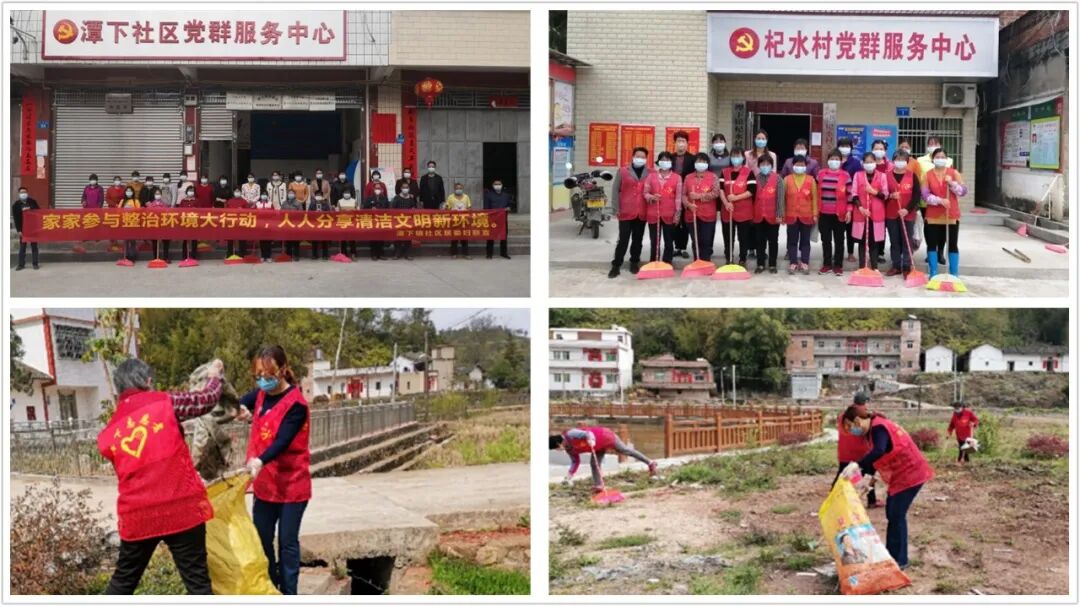 自疫情发生以来,面对严峻的疫情防控形势,潭下镇妇女干部和广大妇女同胞积极响应党委、政府号召,坚持“两手抓,两不误”,即一手抓疫情防控,一手抓环境治理,勇担使命,奋战一线,在环境整治中和疫情防控战场上不惧艰辛,迎难而上,为整治农村人居环境,筑牢疫情基础防线,打赢这场疫情防控阻击战贡献巾帼力量。