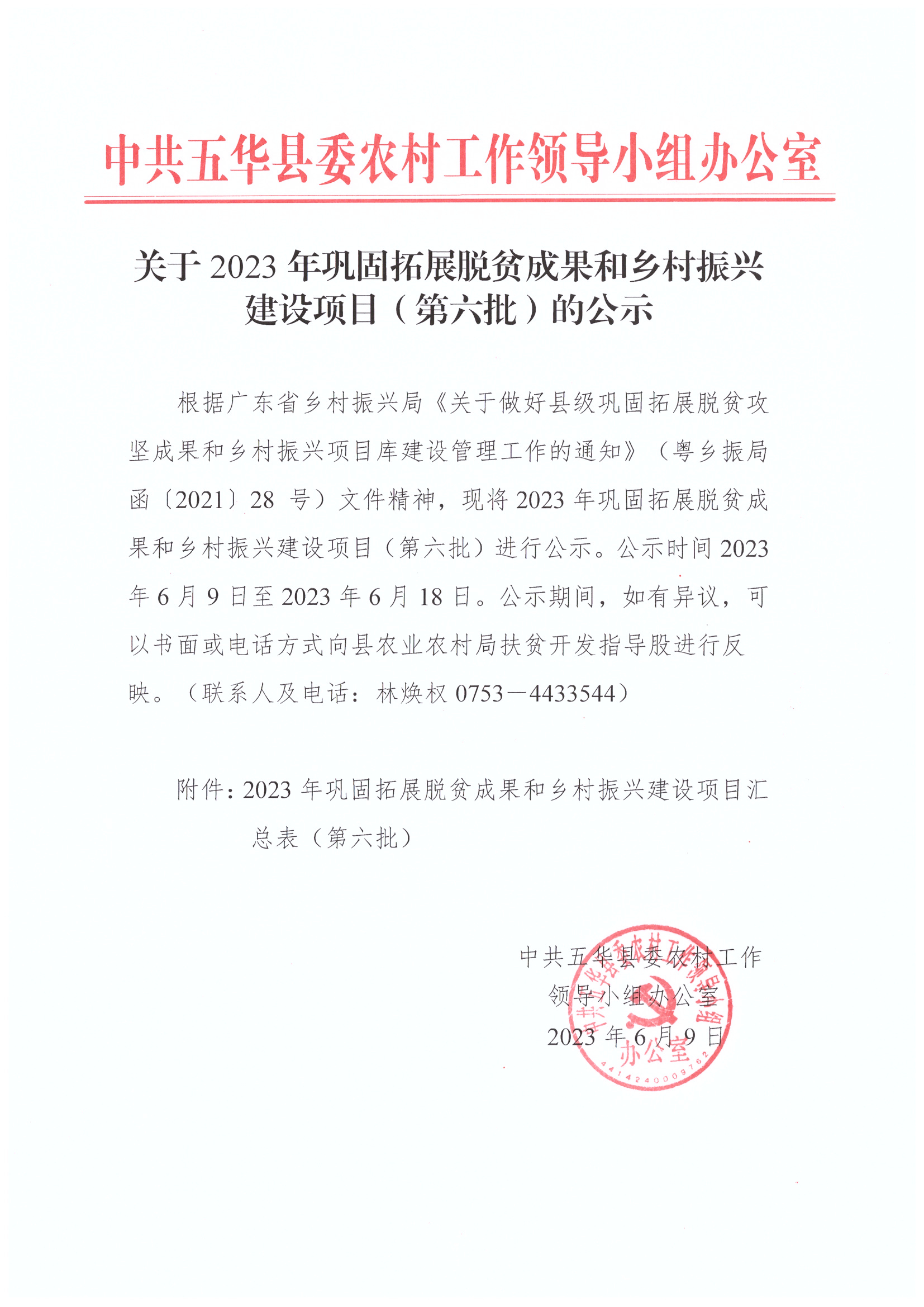 关于2023年巩固拓展脱贫成果和乡村振兴建设项目(第六批)的公示