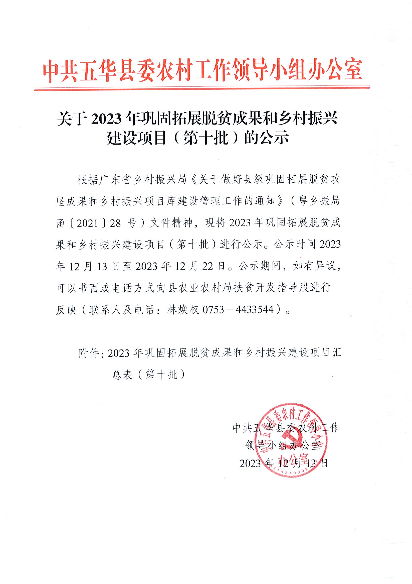关于2023年巩固拓展脱贫成果和乡村振兴建设项目(第十批)的公示