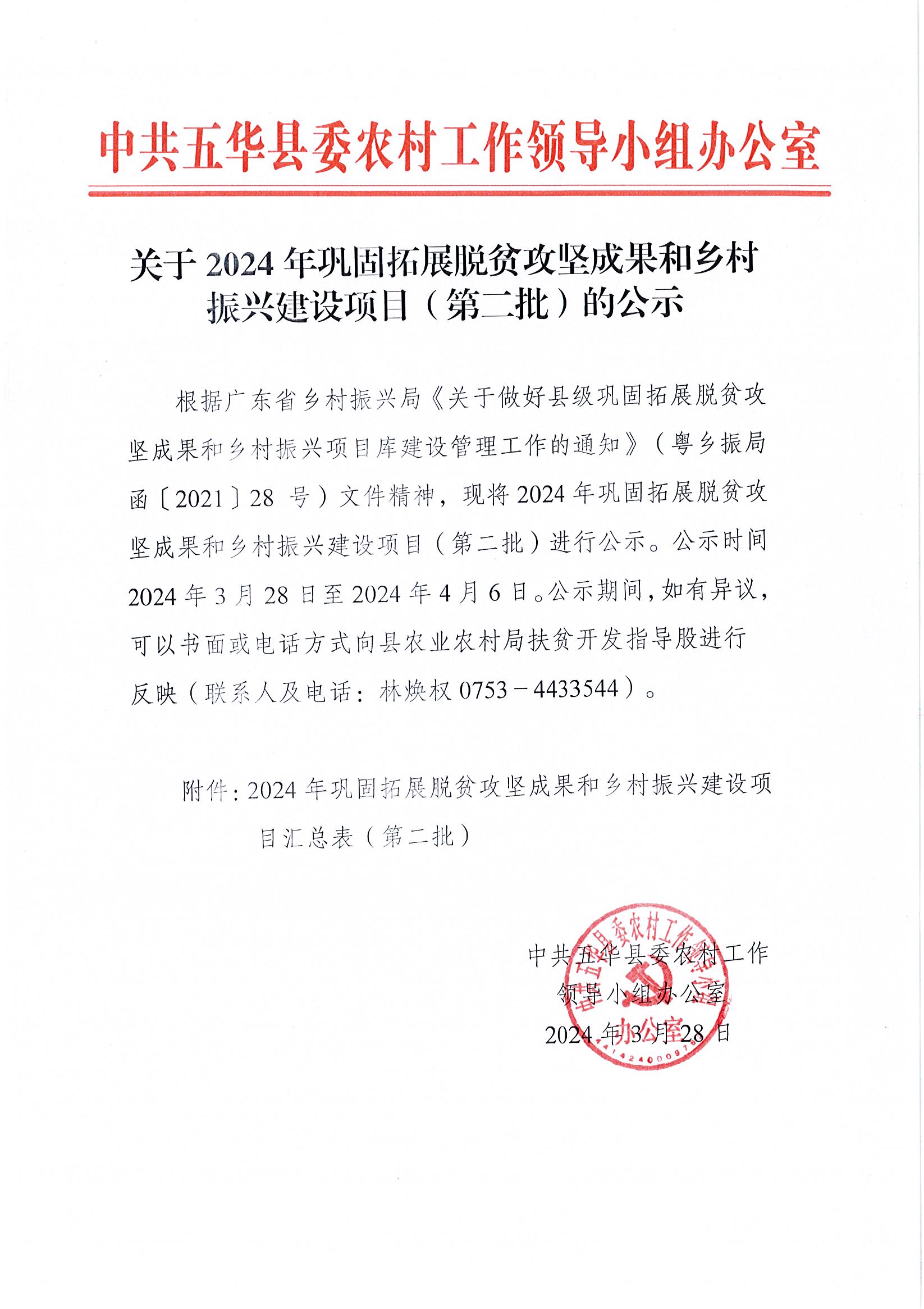 关于2024年巩固拓展脱贫攻坚成果和乡村振兴建设项目(第二批)的公示