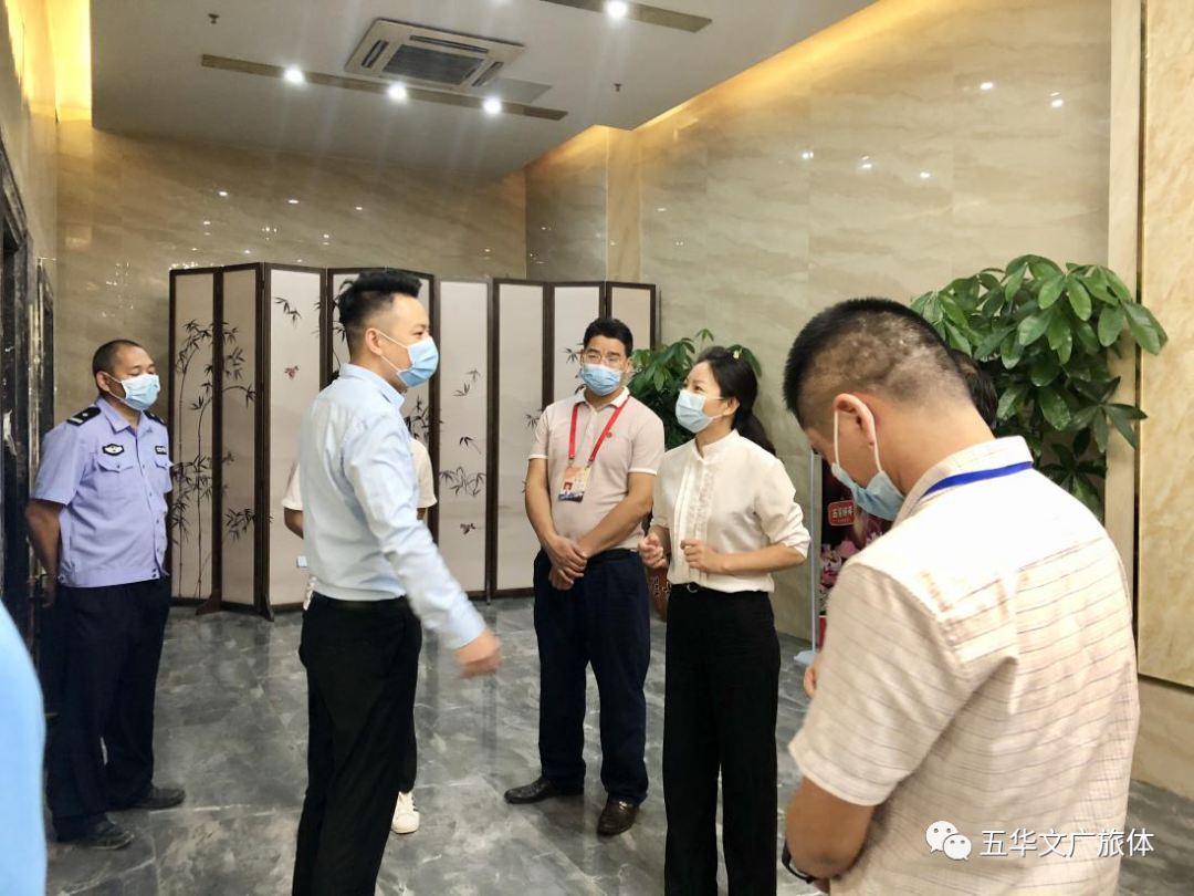 赖俊香一行先后来到五华县路易斯俱乐部、五华县皇家俱乐部、五华县金豪大酒店、梅州市畅意一百文化传媒有限公司、梅州市吉米网咖奥园店,对各场所落实防控主体责任、实施区域清洁消杀、佩戴防护用品、加强体温检测登记、扫粤康码、入场人员数量控制及距离设置、消毒消杀防疫物资储备、疫情防控宣传以及消防设施配备、疏散通道管理等安全生产措施进行了逐项检查,对检查中发现的问题进行现场指导整改。