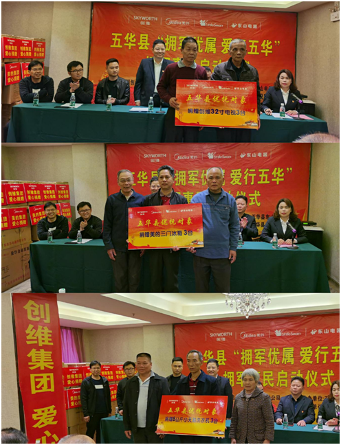 据了解,此次拥军惠民活动由深圳创维集团深圳分公司、美的集团有限公司深圳运营中心、无锡小天鹅电器有限公司、五华县东山电器向我县退役军人及军烈属代表无偿捐赠了电视机、冰箱、洗衣机、电饭煲、电暖炉等家电产品共149件,共计价值26900余元;并发放单张价值400元的“拥军惠民补贴卡”25000张。