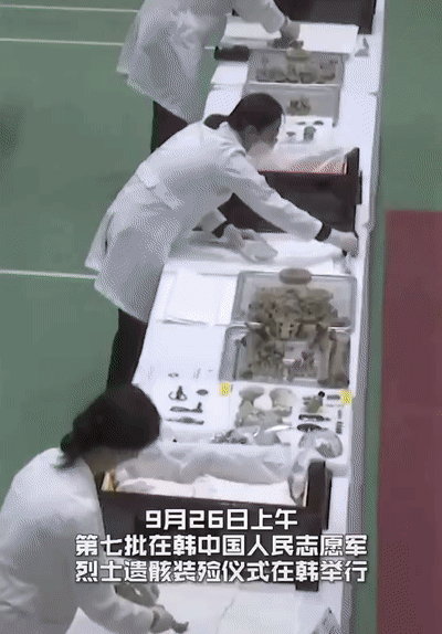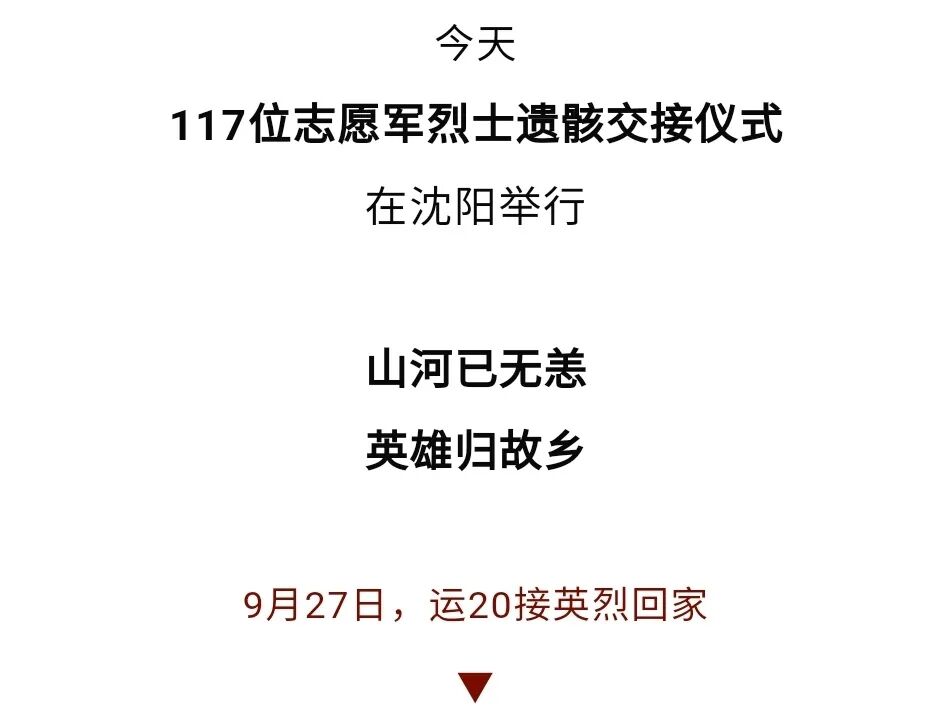 今天上午11点18分,专机降落沈阳117位在韩志愿军烈士的遗骸归国编号01运20接志愿军烈士回家两架歼-11B战机护航伴飞机场水门最高礼遇迎接▼ 9月25日遗骸装殓仪式▼