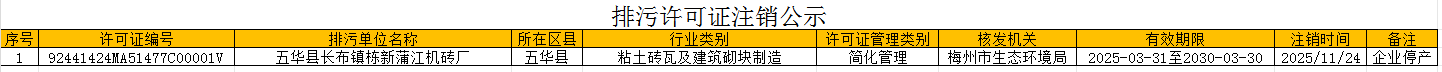 排污许可证注销公示