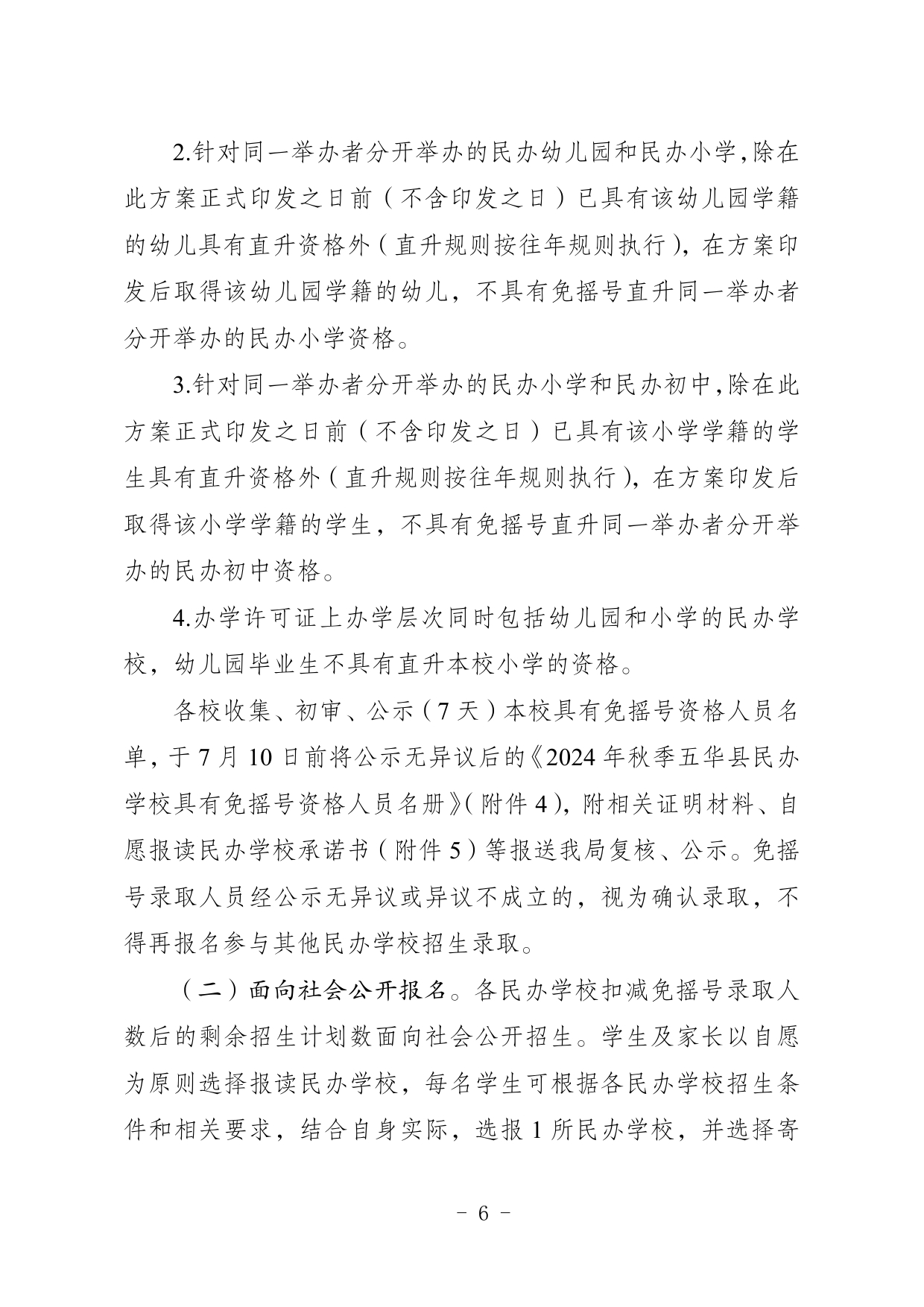 五华县教育局关于印发《2024年五华县民办学校义务教育阶段招生入学实施细则》的通知