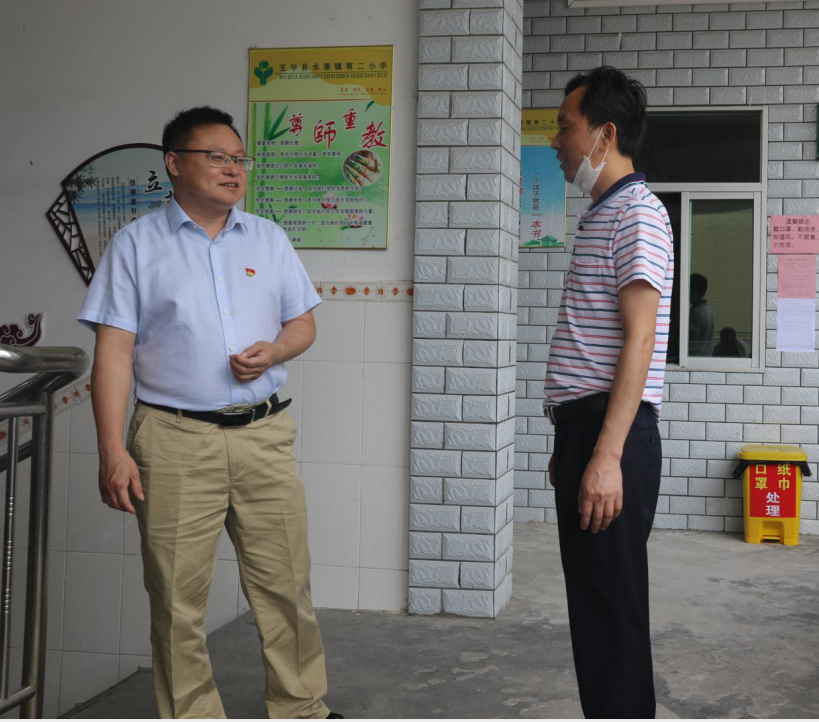 黄国标强调,一要切实提高思想认识,严格贯彻落实县委、县政府的部署要求,始终将师生的身体健康和生命安全放在第一位,细致入微查漏补缺,从严从实做好各项防控措施,持续抓好校园安全教育和隐患排查,全面筑牢校园安全防线。二要加强学校党建工作,规范三会一课,发挥党支部战斗堡垒作用和党员的先锋模范作用,引领推动学校各项工作开展。三要统筹抓好教育教学和疫情防控工作,坚持立德树人,引导学生一生固守爱国爱家爱校情怀;坚持问题导向、结果导向,科学评估诊断,提高课堂效率,推动教育教学质量提升;通过家校合作,加强学生心理健康教育、体育劳动教育、生命教育和文明礼仪教育,培养创新能力,促进学生德智体等全面发展,实现防疫和育人同发力、同推进、同见效。四要统筹各方力量支持学校发展,落实精细化管理,常态化抓好校园清洁绿化,助力我县“双创”工作,创新办学理念,完善“三风一训”,着力打造文明校园,推动学校特色内涵发展。