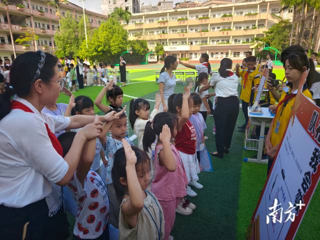 活动现场,全体成员共同参与工作室教研课程——“队前教育大闯关”主题队日活动。课程创新融入“六知六会一做”基础知识,通过情境化关卡设计,让即将入队的适龄儿童在互动实践中深刻感悟少先队的光荣传统。辅导员还精心编制朗朗上口的口诀,带领适龄儿童快速掌握队旗、队徽的深刻含义与红领巾正确佩戴方法,教育引导广大少先队员争当爱党爱国、勤奋好学、全面发展的新时代好少年,将红色的少先队精神稳稳传递到新一代少年心中。