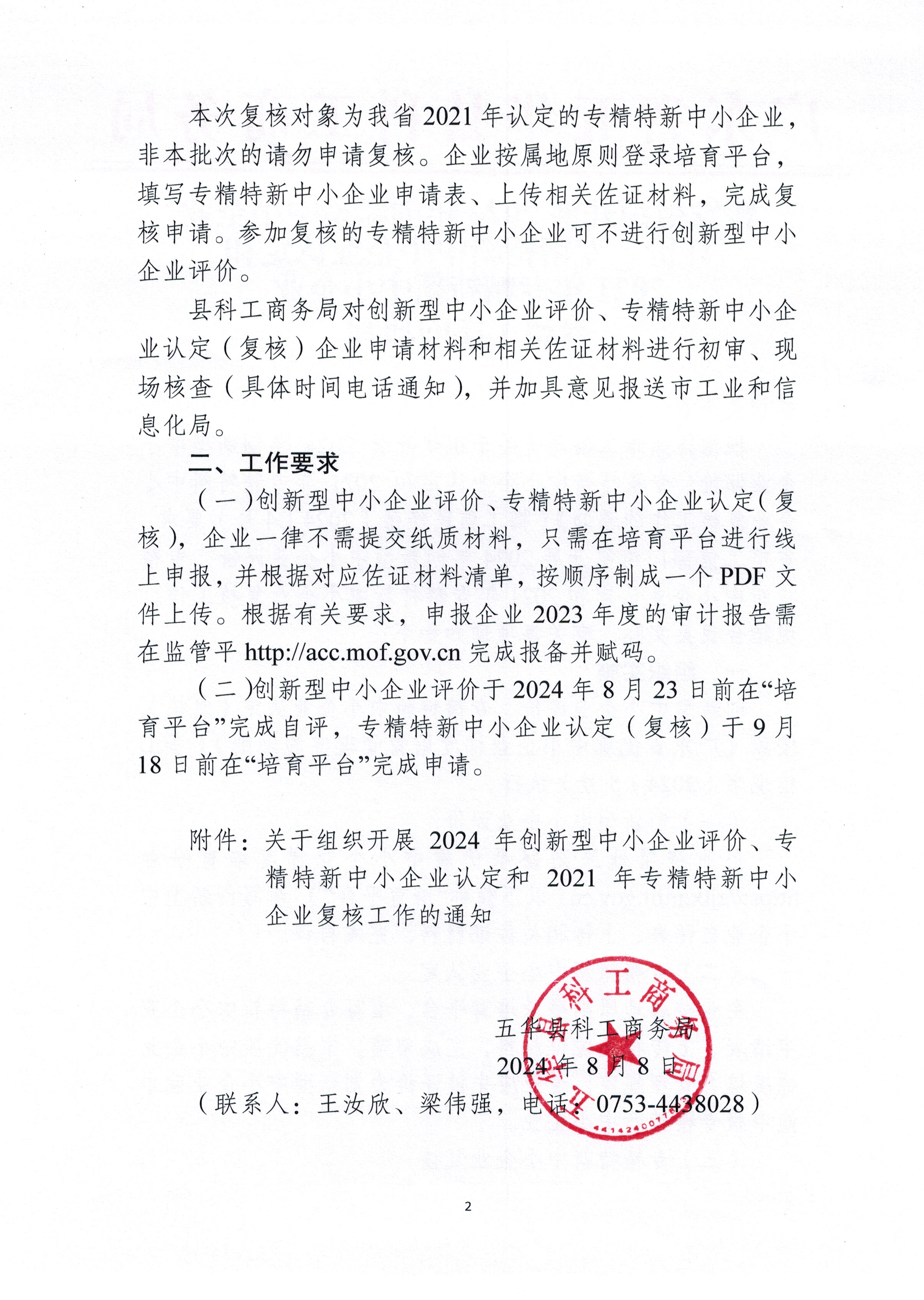 转发组织开展2024年创新型中小企业评价、专精特新中小企业认定和2021年专精特新中小企业复核工作的通知