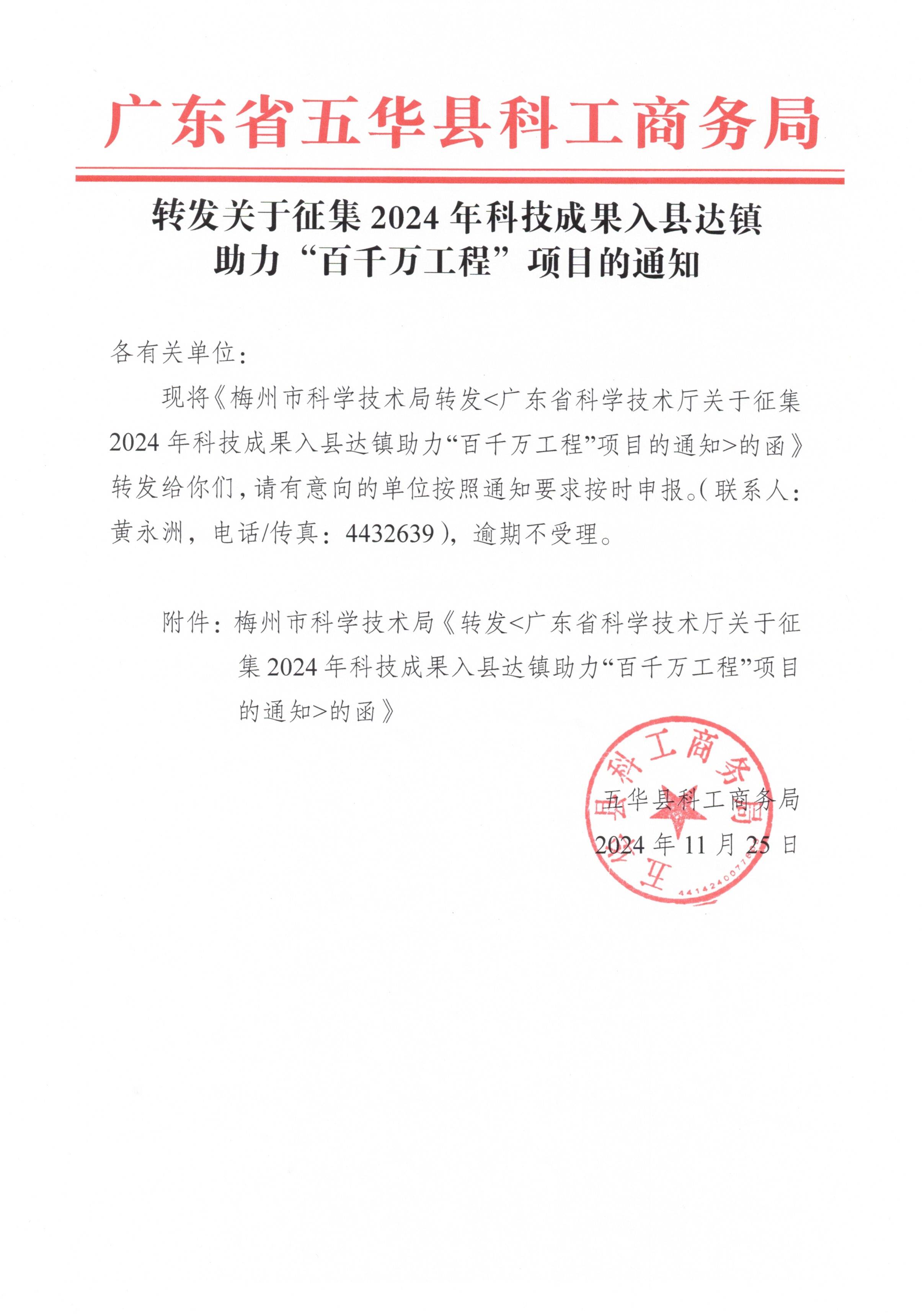 附件梅州市科学技术局《转发广东省科学技术厅关于征集2024年科技成果入县达镇助力“百千万工程”项目的通知的函》.zip