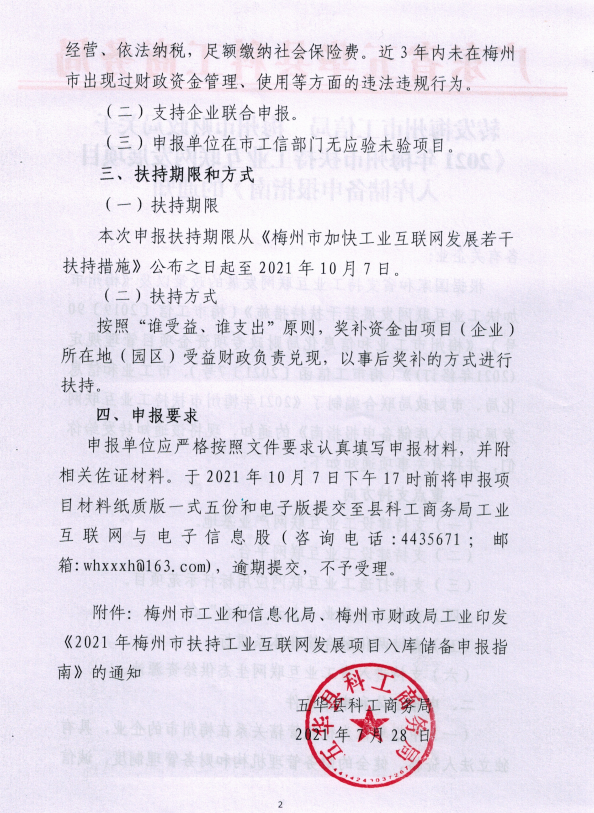 关于印发《2021年梅州市扶持工业互联网发展项目入库储备申报指南》的通知.pdf