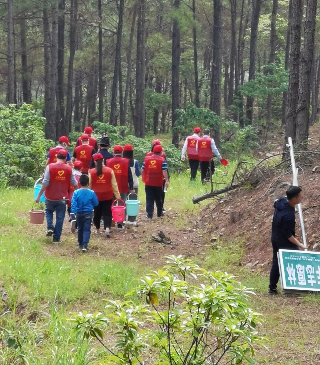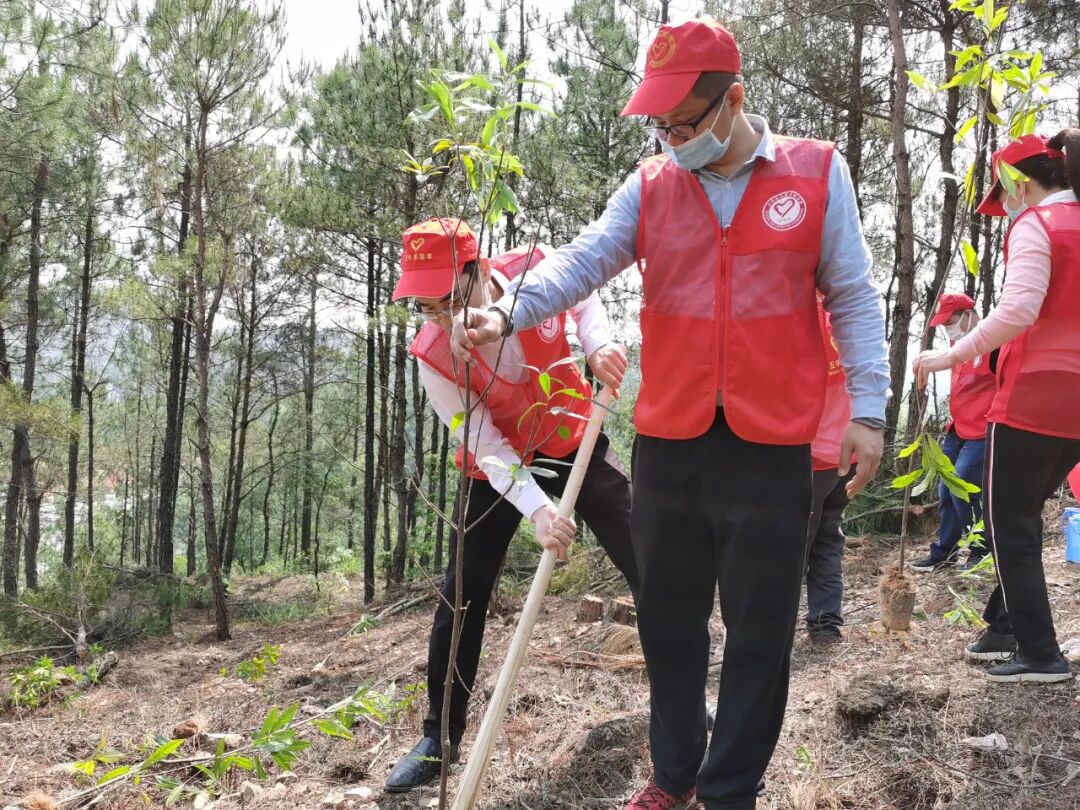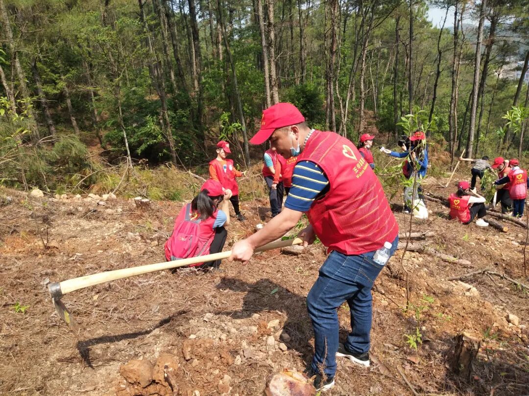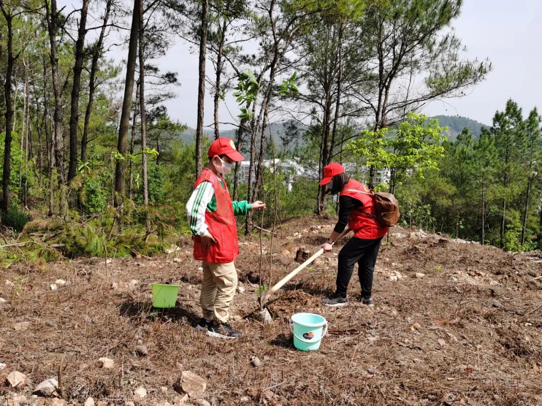上午9时,青年志愿者们准时来到植树地点蒲丽顶森林公园,在团县委的统一安排下,2-3人一组,争先恐后地投入到植树中去。植树现场是一派紧张有序的劳动景象,参加植树的青年志愿者个个热情洋溢、干劲十足,有的拿铁锹,有的运树苗……各个环节衔接有序,个个忙得汗流浃背。经过一番紧张劳动,小树苗棵棵排列整齐,迎风飘扬,展露出勃勃生机。