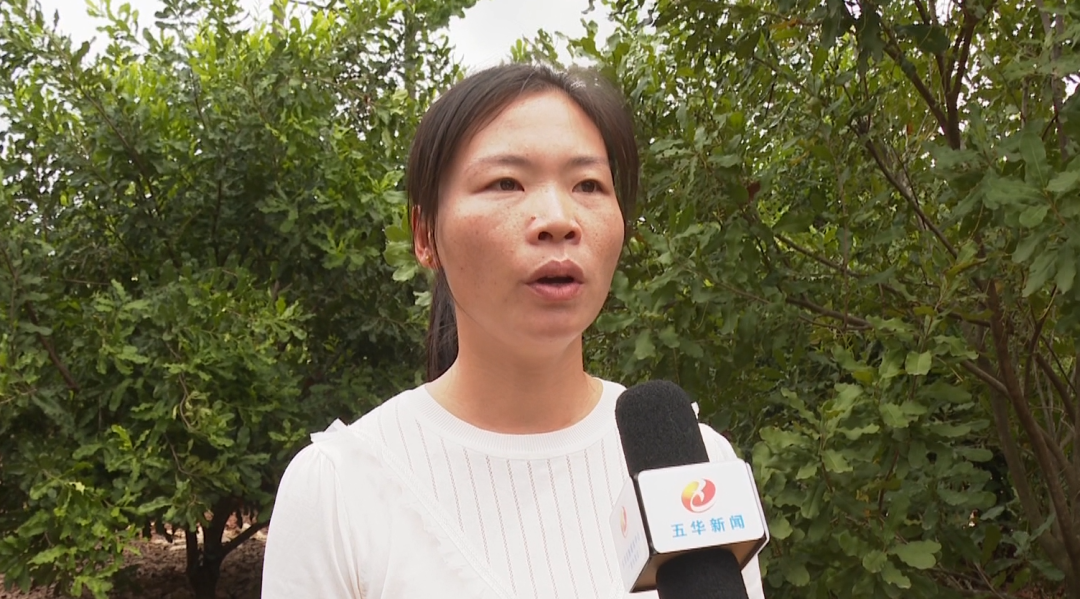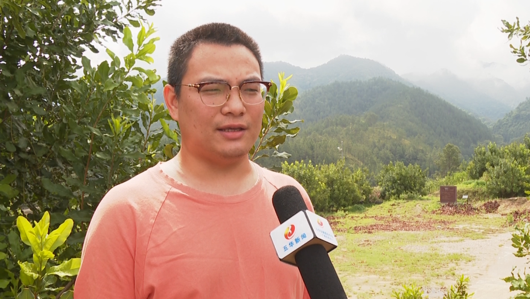 【五华县新谷树农业发展有限公司董事长 张国富:进行维护、服务、指导,有一个(服务)热线,还有保证每2-3个月,我们的技术指导会到农户去了解生长情况、病虫害情况、管理情况,采摘的时候我们负责将所有的(果实)统一收购,由公司保底收购,让农户种出产品不愁销路。】