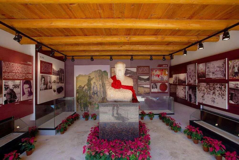 展馆大堂庄严肃穆地立着毛主席和十大元帅木雕像,馆内还陈列了我县在不同革命时期的红色事迹、军用物资、先进期刊等。