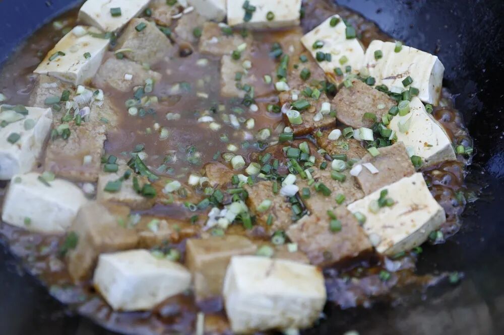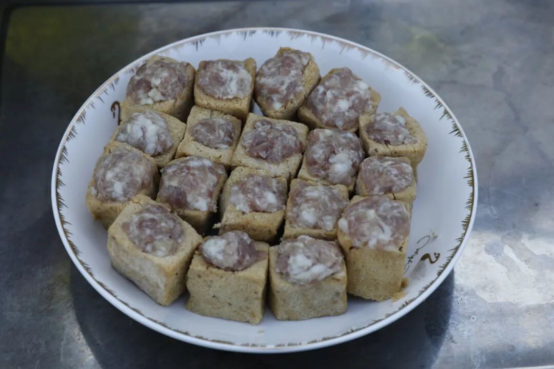 很快,旁边的五华酿豆腐、酿毛糕也出锅了,新鲜上桌的五华酿豆腐、酿毛糕肉馅饱满,两面金黄而不焦,让人垂涎欲滴。群众品尝后纷纷叫好。