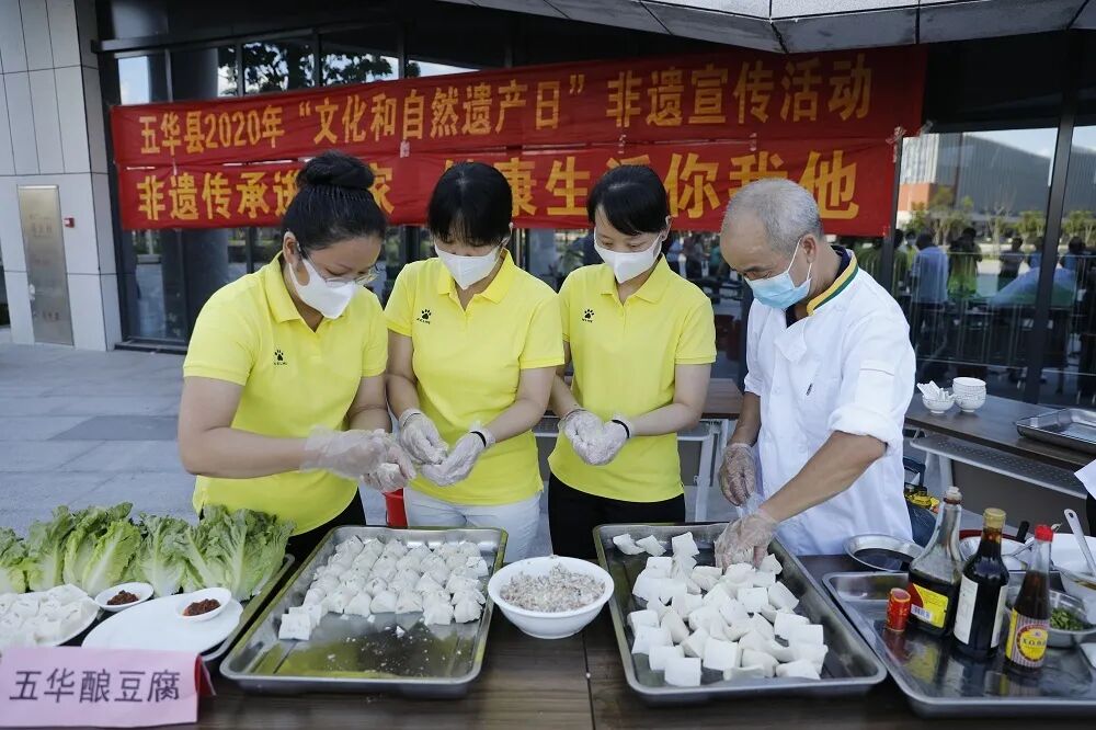 活动开始,非遗传承人现场制作起五华酿豆腐、岐岭毛糕美食,剁陷,酿肉,大火下锅煎炒。现场的群众纷纷拿起手机拍了起来,记录大师的高超技艺。