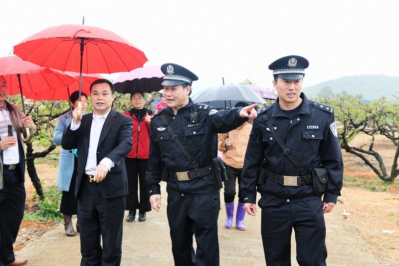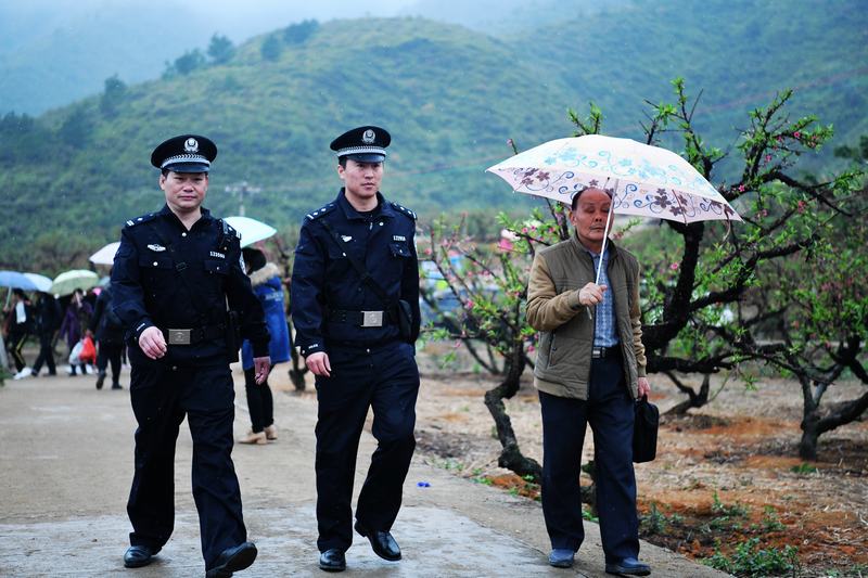 23日上午,淅淅沥沥的春雨混合着娇艳的桃花芬芳拉开了五华第四届乡村旅游桃花节的序幕。为应对人流如潮的游客,全程担负此次安保任务的五华县公安局潭下派出所民警们,文明执勤,热情服务,为桃花节的顺利开展装上了一把“安全锁”。