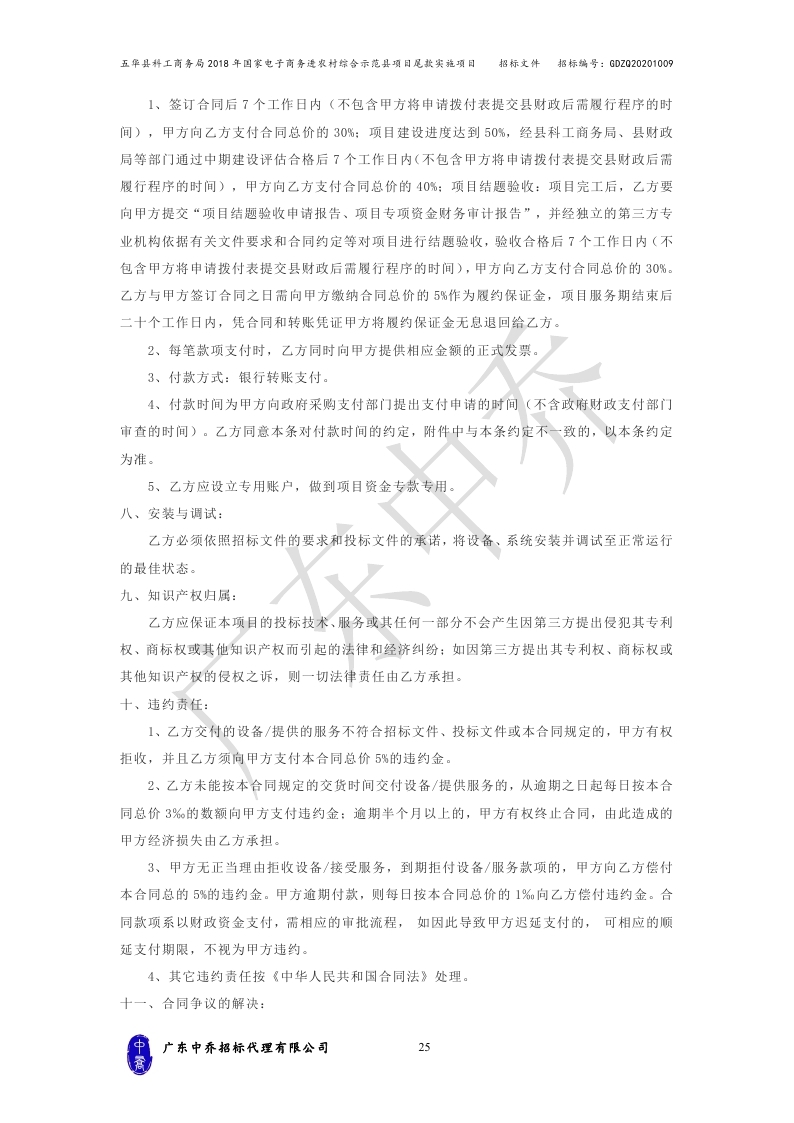 五华县科工商务局2018年国家电子商务进农村综合示范县项目尾款实施项目招标文件