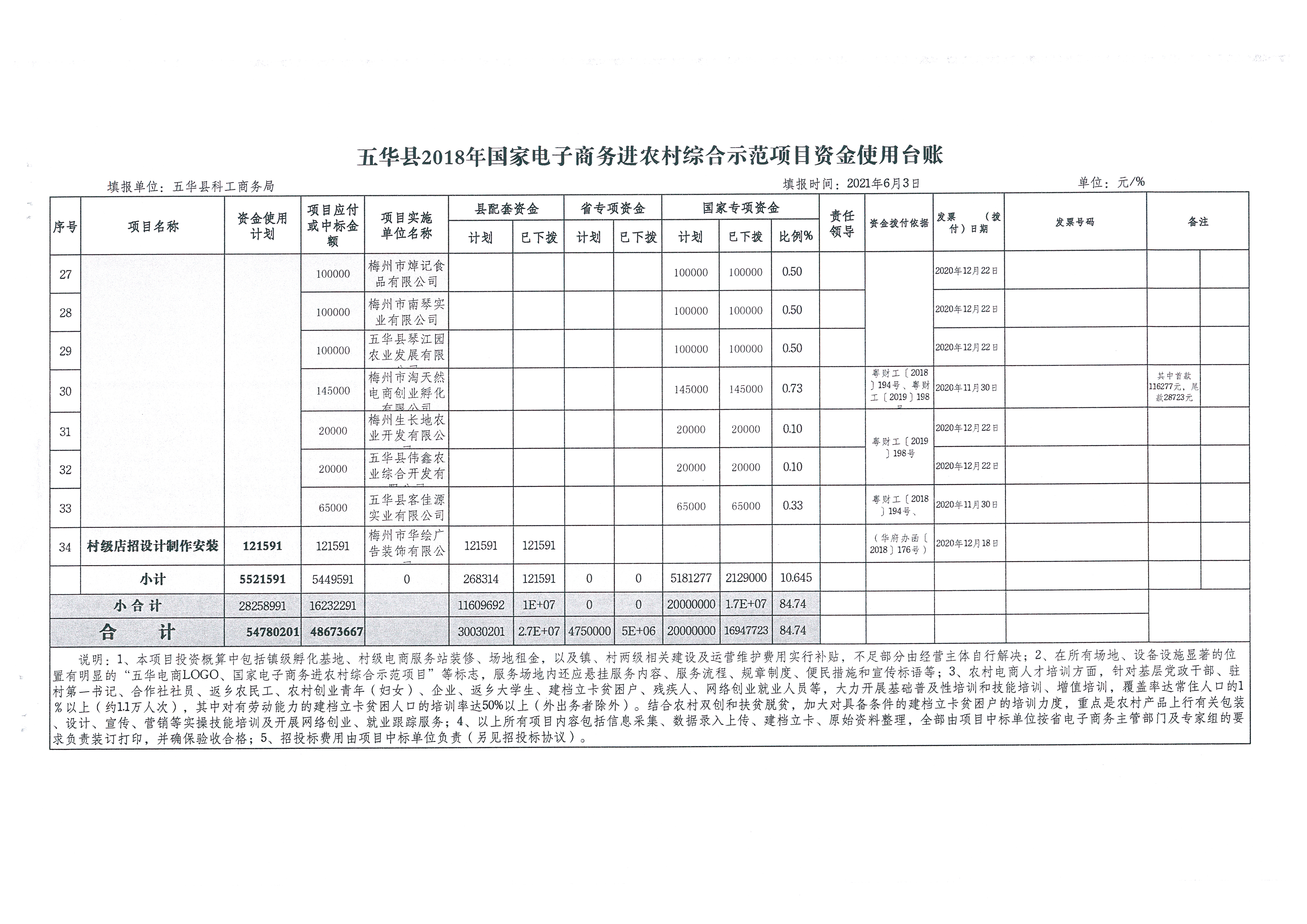 五华县2018年国家电子商务进农村综合示范项目资金使用台账(2021年5月份)