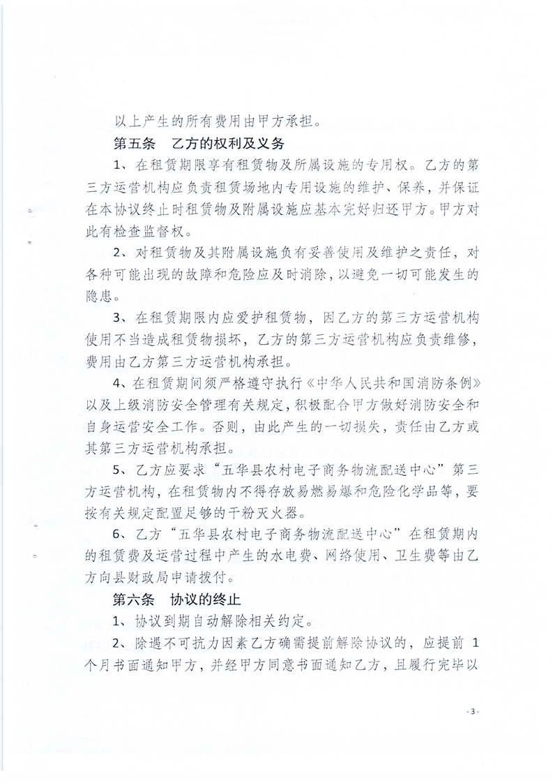 关于“五华县农村电子商务物流配送中心”的场地租赁协议