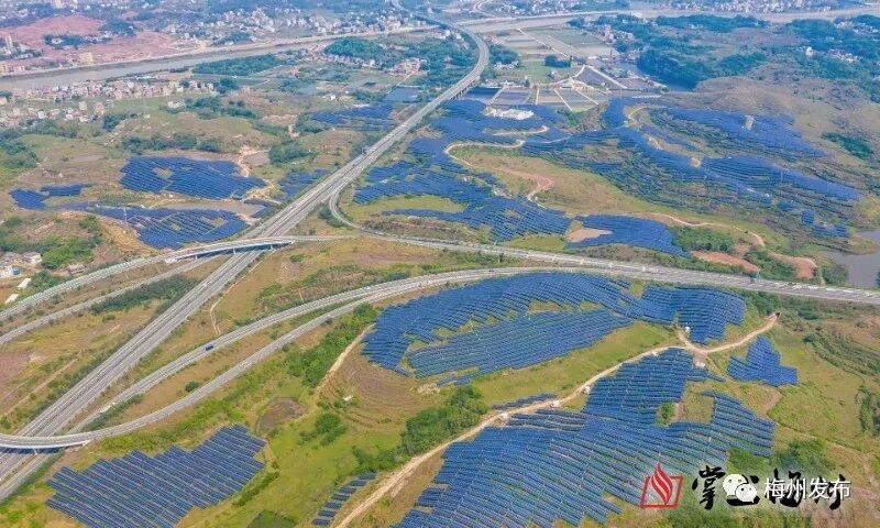 在横陂镇与河东镇交界处,一排排太阳能光伏板覆盖了1300多亩荒山,将太阳能源源不断转化为电能,创造经济效益。