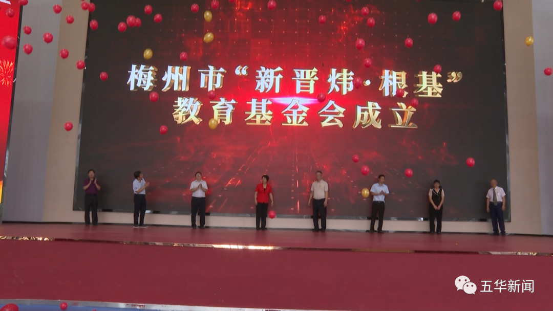 在开学当天,梅州“新晋炜·根基教育基金会”也在学校成立。并颁发了“梅州市‘新晋炜﹒根基’教育基金会2020年奖教奖学金50万元,用于对全县考取名校的优秀学子、优秀教师进行奖励。