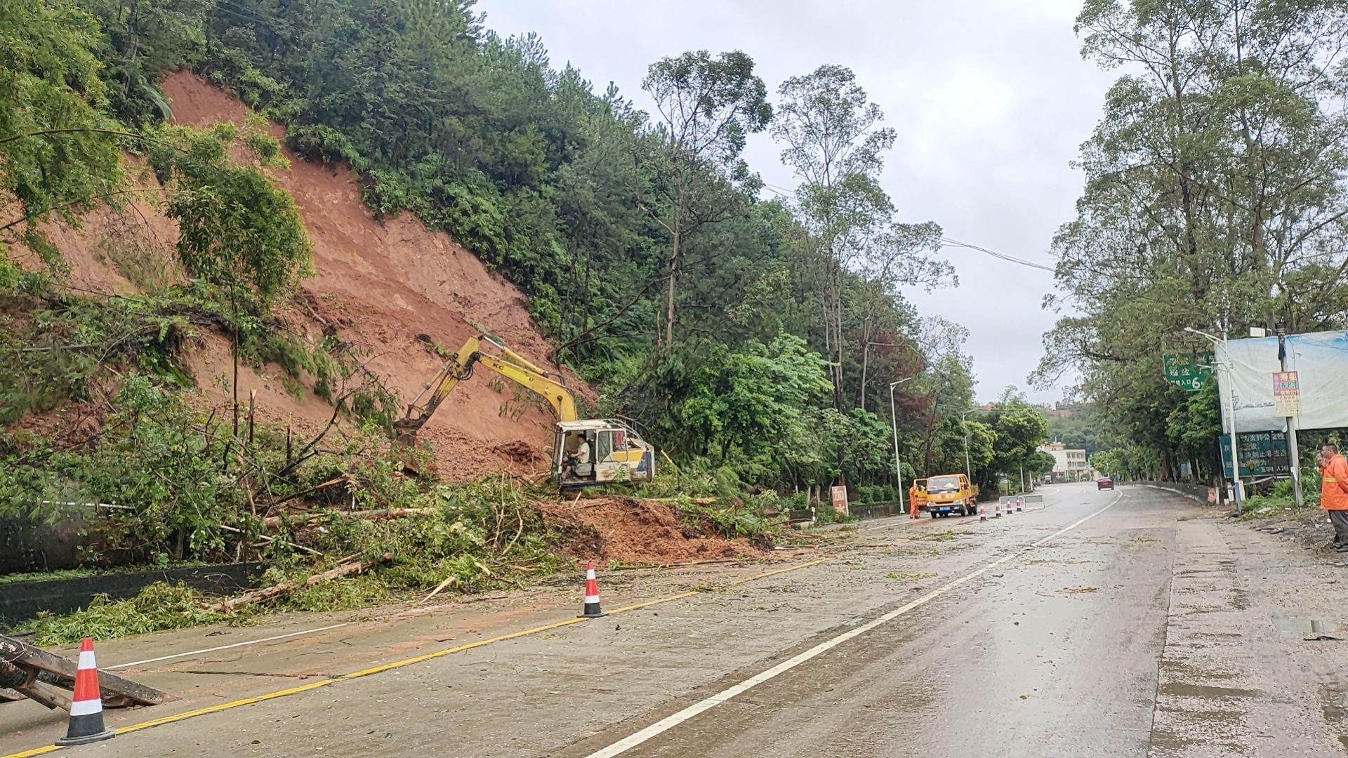 二、连续作战。从9月5日开始,根据“三防”检查分组安排,由中心领导班子成员带队,分5组对全县321公里国省道隐患再排查、再整治、再巩固,重点加强对在建工地、地质灾害隐患点、高危边坡、临水临崖、危旧桥梁等重要路段的隐患排查整治,落实落细各项防御措施。路政和养护部门及各道班加强“雨前雨中雨后”巡查,发现险情及时上报。一旦出现险情,险情就是命令,抢险刻不容缓,五华公路人充分发扬不怕苦、不怕累的精神,顶风冒雨、克服疲劳,争分夺秒地抢通生命线,在风雨中担使命,在抢险中践初心。据统计,9月5日至7日,全县国省道共发生水毁塌方55处、路基下边坡冲毁7处、桥梁水毁缺失1 座、路面积水19处、倾倒路树路竹22处,累计损失达1650 多万元;五华公路人连续作战,累计出动挖掘机15台班、铲车15台班、装载车20台班、人员106人次,抢通5处中断路段,投入抢险资金100多万元。