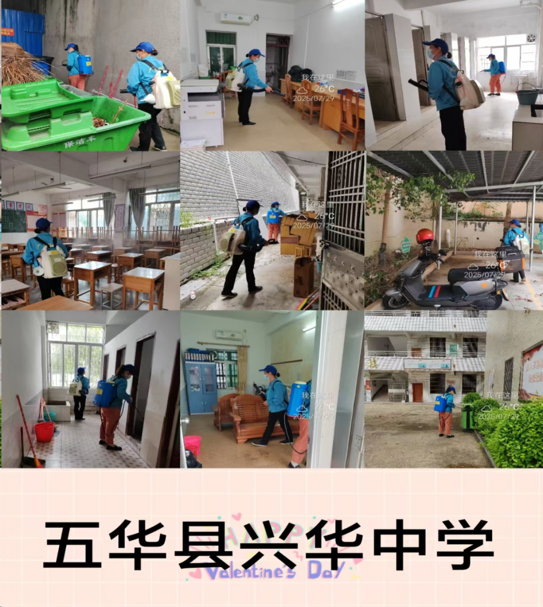 为全面落实全县统一灭蚊工作部署,有效降低蚊媒传染病传播风险,保障师生健康安全,五华县教育系统积极响应上级关于基孔肯雅热和登革热防控工作要求,迅速行动,在全县范围内组织开展校园环境整治与蚊媒消杀专项行动,全力构建健康无蚊的校园环境。